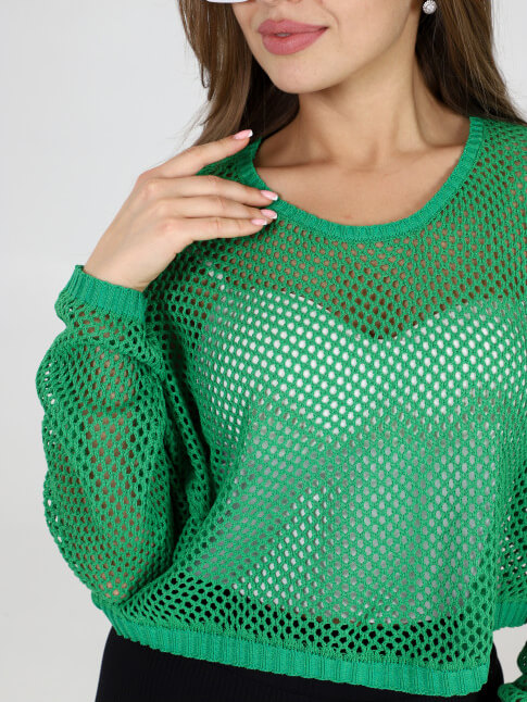 Женский укороченный джемпер оверсайз в сетку - идеальный вариант для создания образа летом и весной. Этот джемпер станет ярким акцентом в любом образе. Изготовленный из мягкого вязаного материала, джемпер в сеточку подходит для подростков и девушек разных размеров. Прозрачный джемпер с длинными рукавами и вырезом впишется как в пляжный образ, так и в повседневный весенний образ при сочетании с другими вещами. Тонкий топ подойдет и подростковому гардеробу благодаря трендовому дизайну.