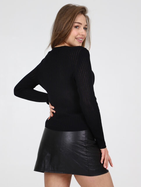Женский джемпер с длинным рукавом СВ-7.01 черный, из трикотажного полотна 72% вискоза, 28% PBT. Размерный ряд: M (42-46) и L (48-52).