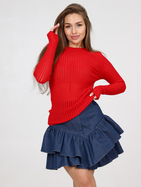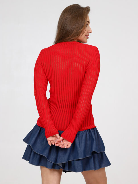 Женский джемпер с длинным рукавом СВ-7.03 красный, из трикотажного полотна 72% вискоза, 28% PBT. Размерный ряд: M (42-46) и L (48-52).