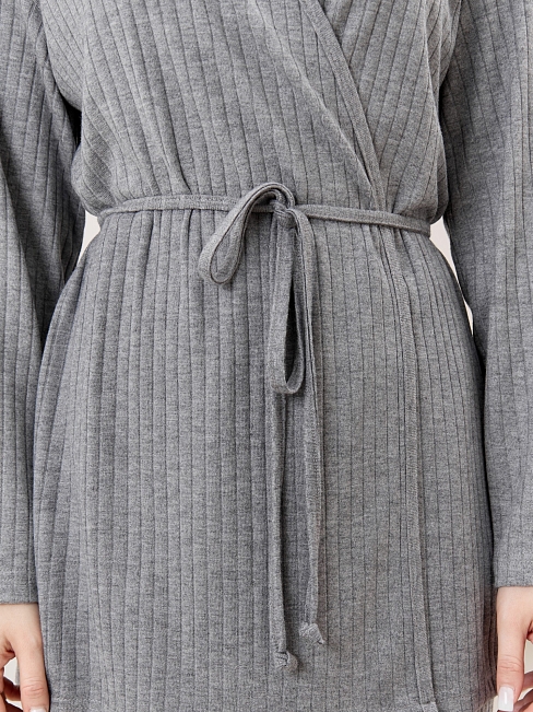 Кардиган-кимоно женский из гладкокрашенного трикотажного фактурного полотна в «рубчик» с добавлением ангоры, на запахе, прямого силуэта, с длинными втачными рукавами. Нижние срезы рукавов, так же низ изделия-обработаны подгибкой, борта полочки и горловина окантованы основным материалом. Изделие укомплектовано съемным поясом, вытачанным из окантовки.