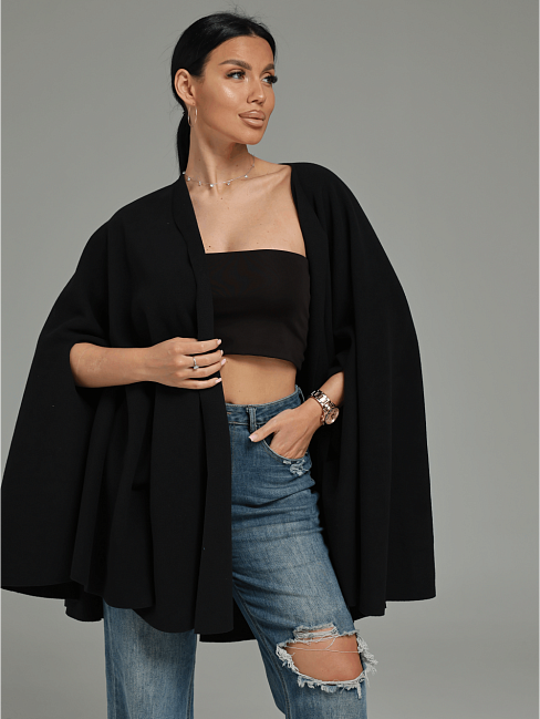 Универсальность 2-в-1: Это и уютный кардиган, и стильное пончо. Свободный крой скрывает недостатки фигуры, а прорези для рук обеспечивают свободу движений.