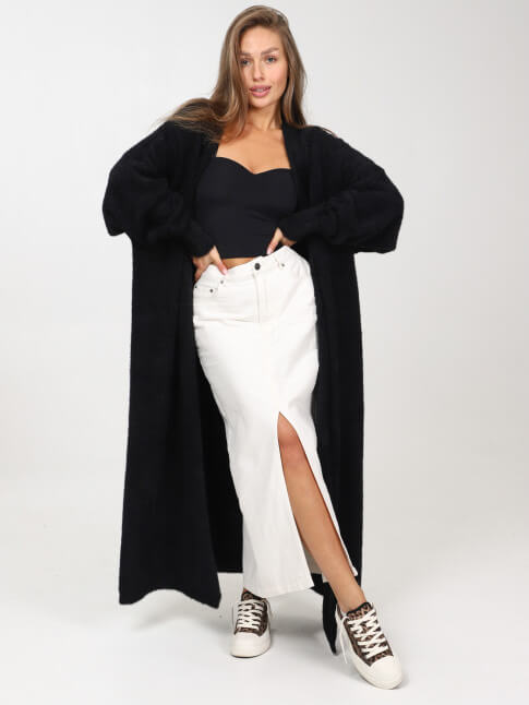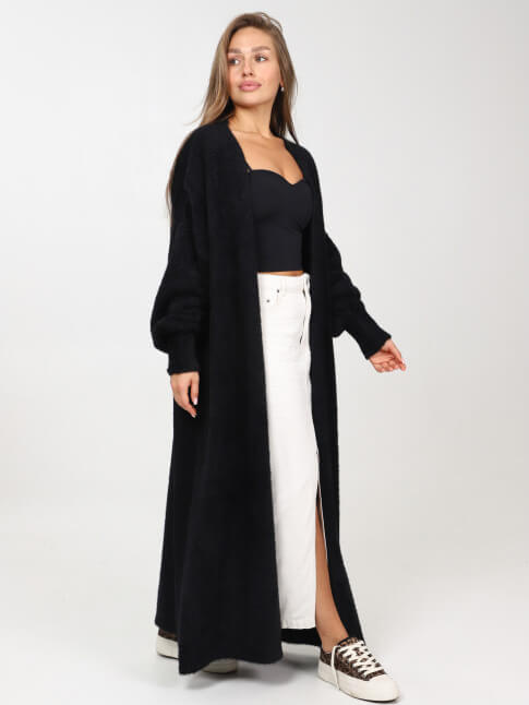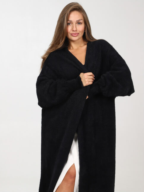 Пушистый, мягкий и теплый длинный кардиган без пуговиц.