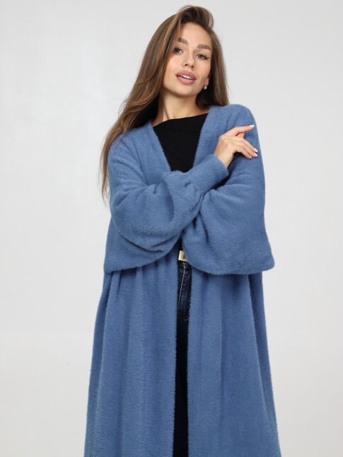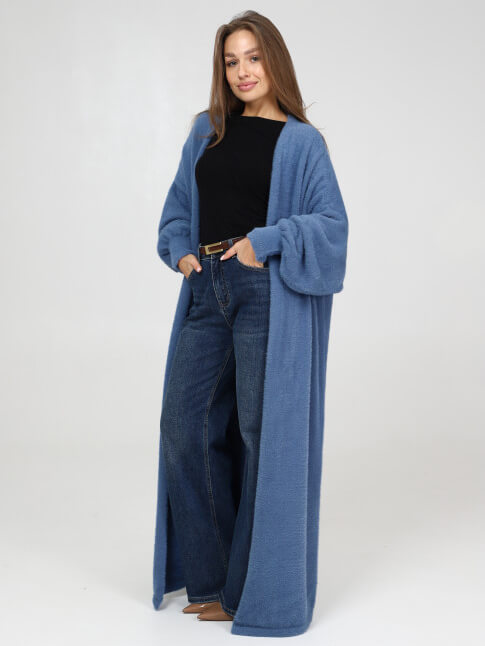 Пушистый, мягкий и теплый длинный кардиган без пуговиц.