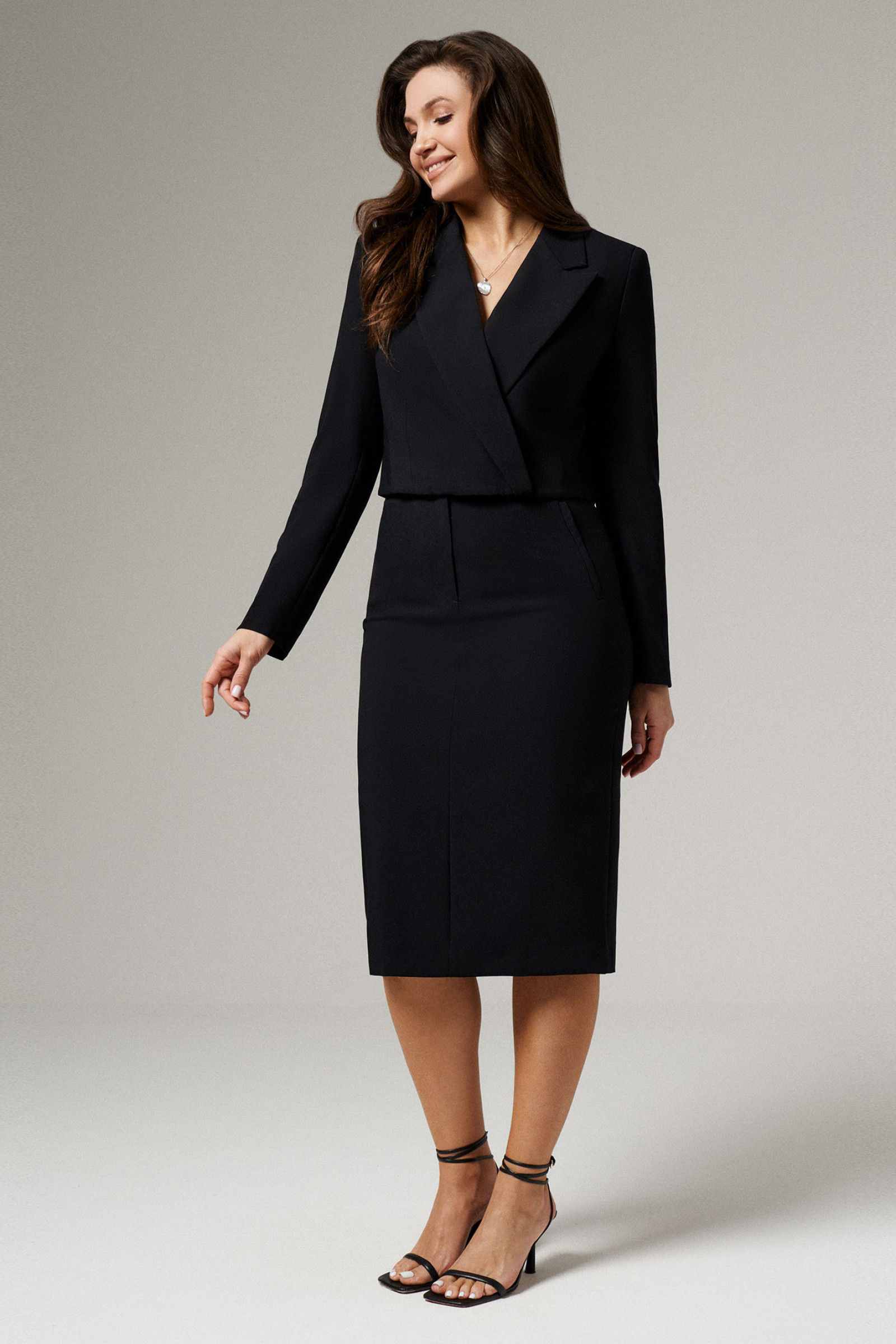 Состав: Жакет: Полиэстер 70%; вискоза 25%; эластан 5%.; Юбка: Полиэстер 70%; вискоза 25%; эластан 5%.; Подкладка: Полиэстер/polyester 55%; вискоза/viscose 45%.