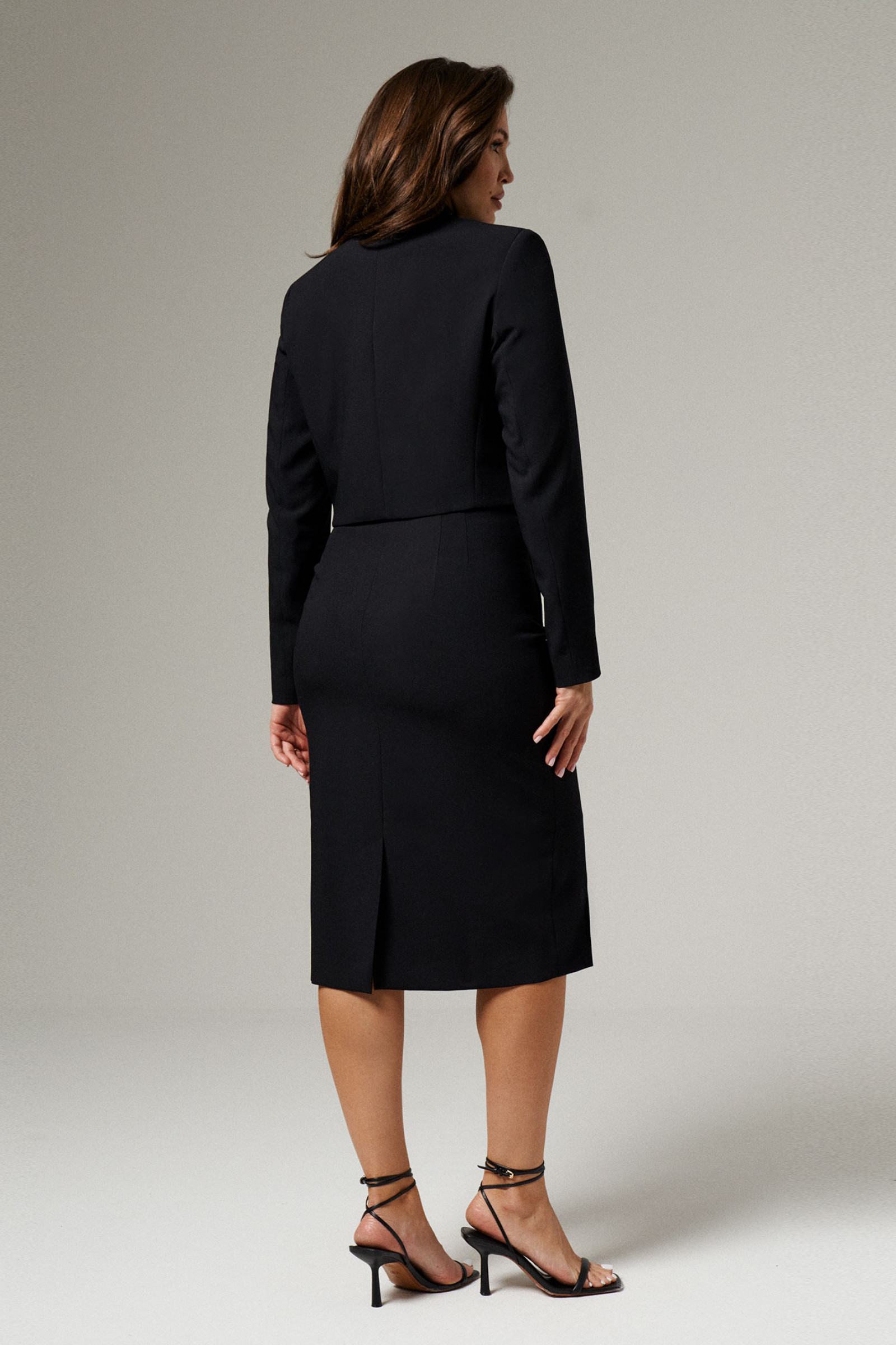 44 Жакет: Длина изделия - 42см, Длина рукава - 62см, Ширина плеча - 12см, Ширина по груди - 48см, Ширина по низу - 43см, Ширина рукава - 17.7см; Юбка: Длина юбки - 74см, Ширина по бедрам - 48см, Ширина по талии - 36см;