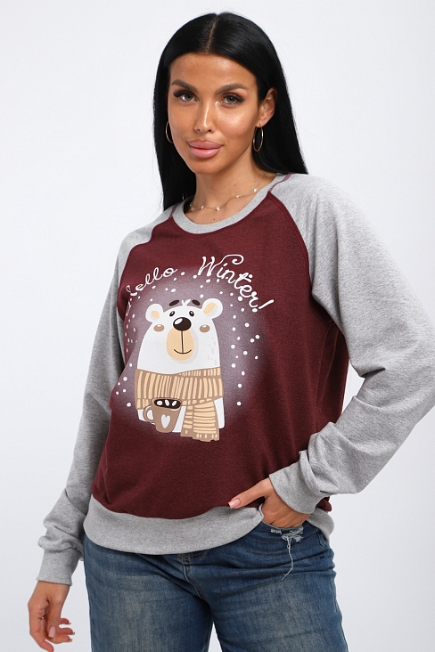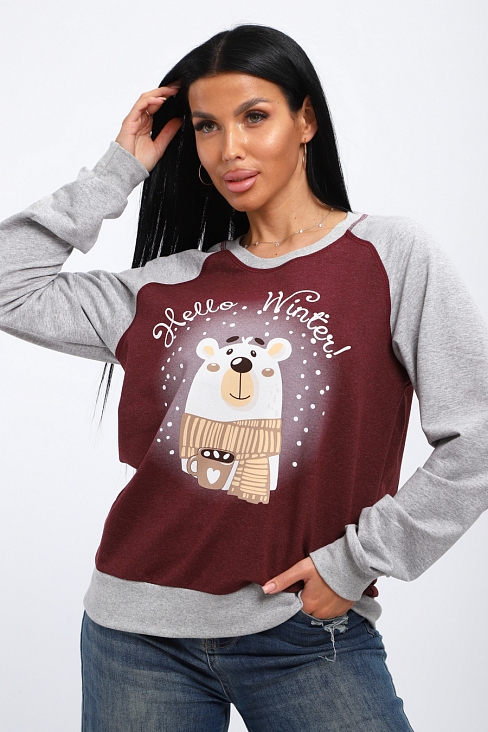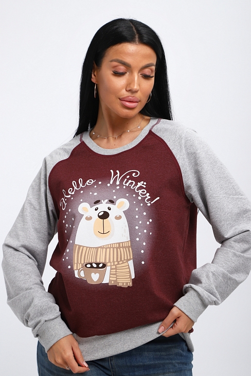 Женский лонгслив из хлопковой трикотажной ткани, футера двухнитки. Женский джемпер отлично подойдет для прогулок или встречи с друзьями.