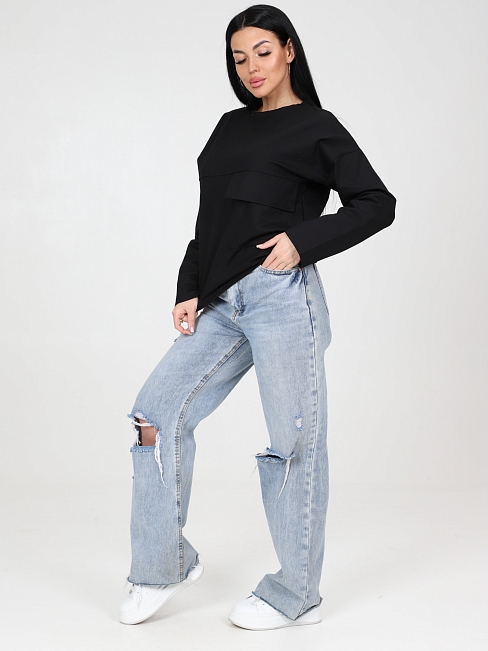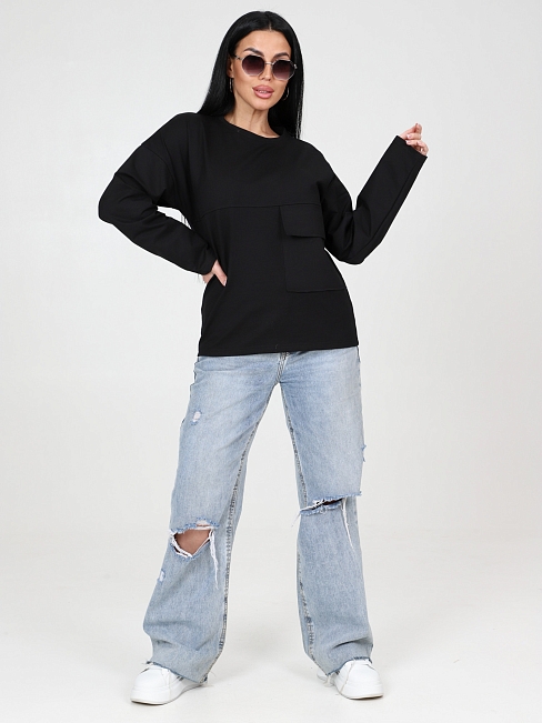 Женский лонгслив с карманом на груди. Изготовлен мягкой смесовой ткани.