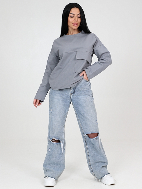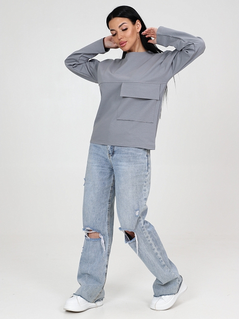 Женский лонгслив с карманом на груди. Изготовлен мягкой смесовой ткани.