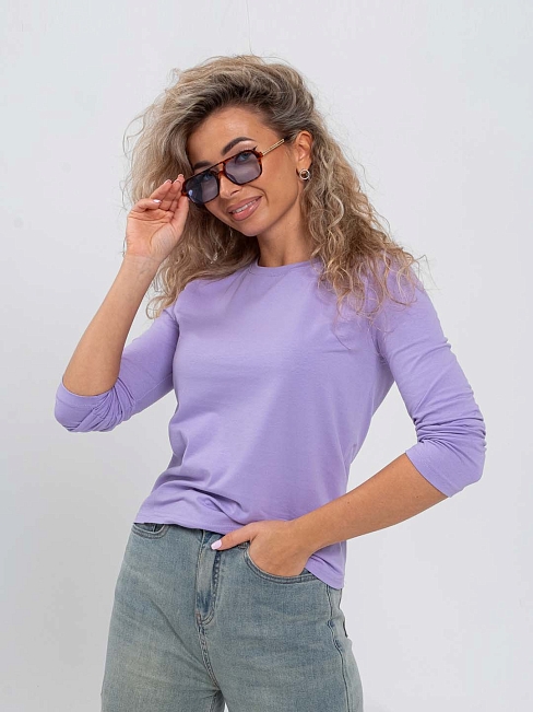 Базовый лонгслив мод.1585/3 / Лиловый из мягкого, гладкого трикотажного полотна. Подходит для частого ношения. За счет хорошей плотности материала - изделие не просвечивает, а небольшое количество искусственных волокон делает материал эластичным и долговечным. Благодаря правильному и наиболее удобному полуприлегающему силуэту данная модель вполне может занять самое топовое место в вашем гардеробе! Создавай с ним стильные и современные образы, сочетая как с классикой, так и с ультрамодными вещами.