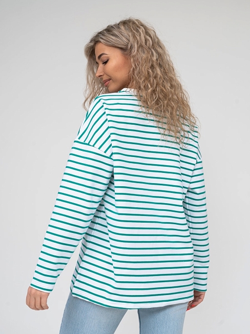 Базовая тельняшка мод.1688/1* / Зеленый идеально подойдет для составления множества модных аутфитов. Тельняшка в современном прочтении-это обязательно "оверсайз", качественный и невероятно комфортный трикотаж, удлиненные рукава и безупречная посадка! Модель выполнена из европейского трикотажного полотна, качества пенье.