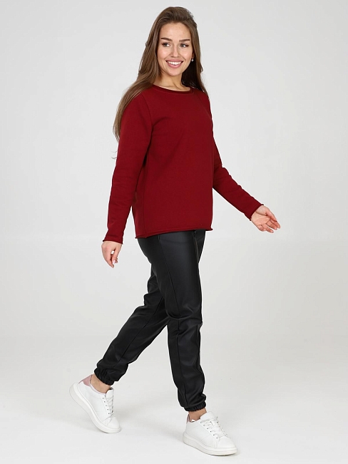Женский джемпер выполнен из трикотажного приятного к телу футер без начеса.