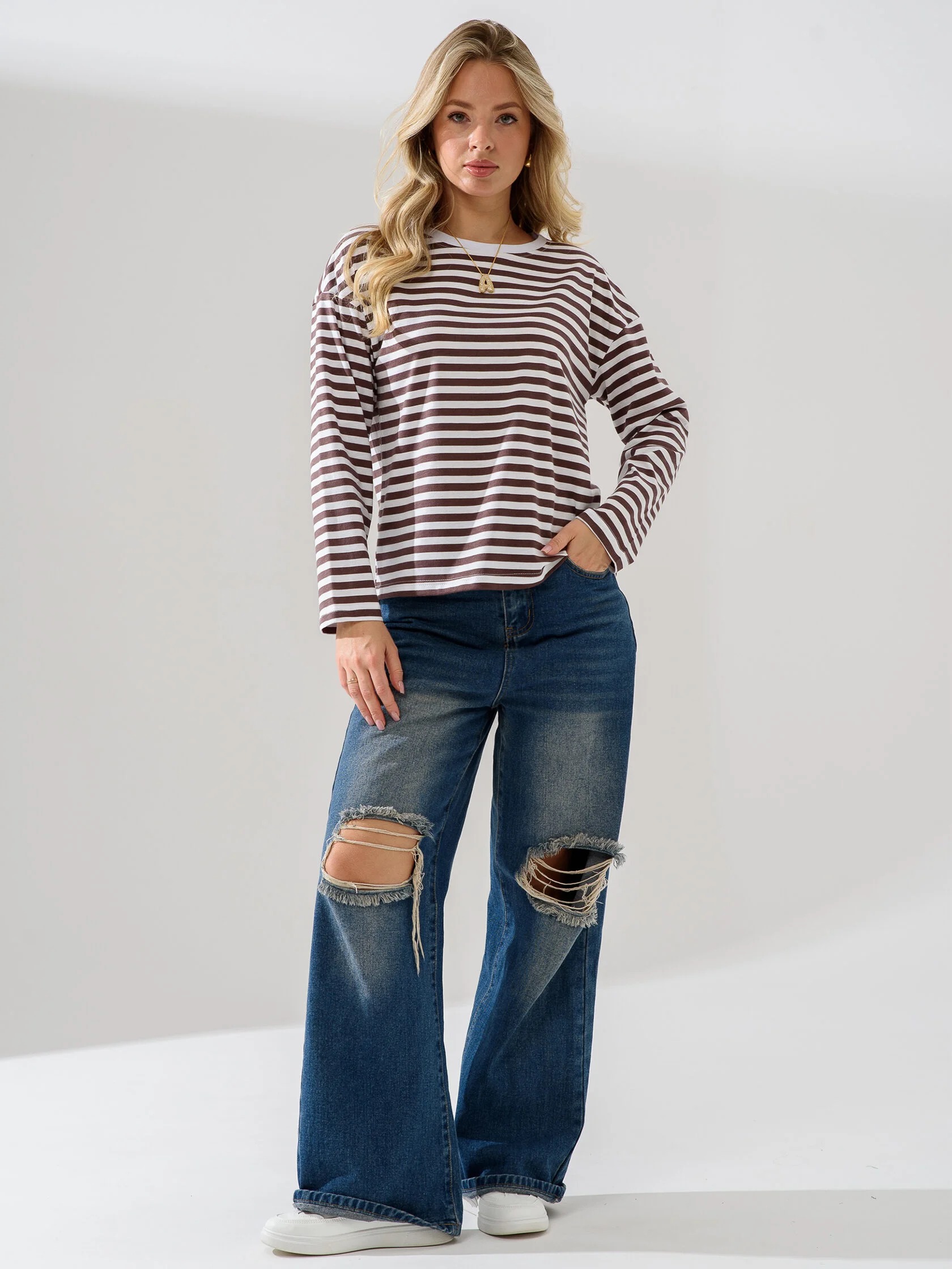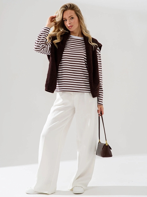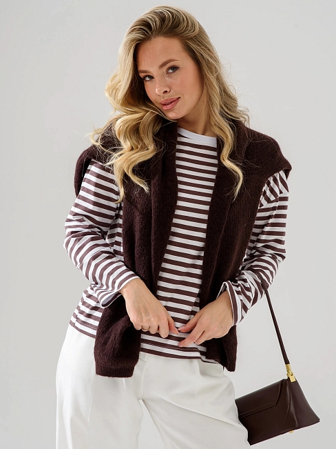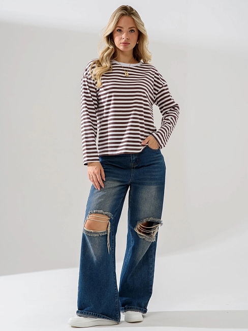 Женский лонгслив "Полоса" 2394-К / Коричневый