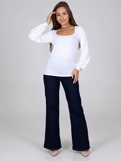 Женская водолазка из вискозы с длинным рукавом-фонариком и глубоким вырезом.