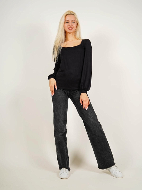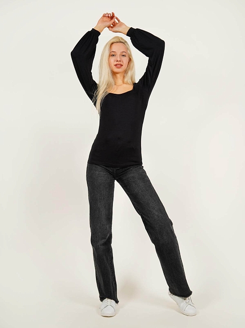 Женская водолазка из вискозы с длинным рукавом-фонариком и глубоким вырезом.