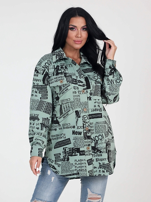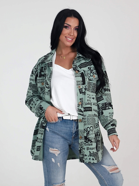 Жакет МАКСИ ЖФ-53 / Газета оливка слегка объёмный, удлинённого силуэта, с отложным воротником. Длинные рукава с заниженной линией плеча, планка и рукава с манжетами на пуговицах, нагрудные карманы с клапанами. Женский жакет на пуговицах можно сочетать с базовым топом или блузой, фактура и плотность ткани позволяет носить жакет как рубашку. Будет актуально смотреться в любое время года. Женский жакет / рубашка сшит из плотного трикотажного полотна - футер. Благодаря свободному oversize крою модель сидит хорошо на любом типе фигуры. Удлиненная рубашка / жакет достойная альтернатива легкой куртке, ветровке, джинсовке.