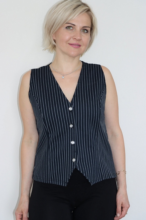 из хлопковой ткани футера, с добавлением лайкры. Женский классический жилет