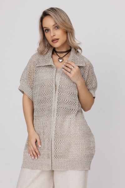 Жилет ажурный удлиненный из льна, силуэт прямой, на молнии.