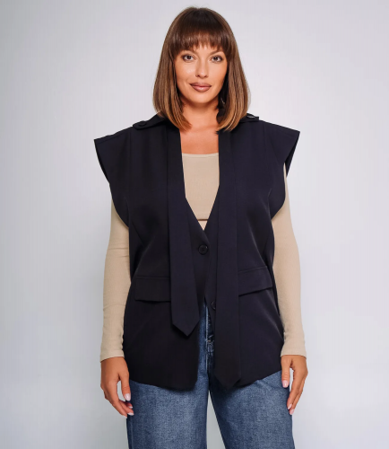 Жилет – это одежда, которая подчеркивает привлекательность каждой женщины. Этот жилет выполнен из ткани, состоящей на 65% хлопка и 35% из полиэстера. Фасон свободный, с широкими плечами, которые создают лёгкий эффект «плечевых накладок», добавляя уверенности и подчеркнутой структуры. Отсутствие рукавов позволяет надевать жилет как самостоятельный элемент, так и в сочетании с разными топами и рубашками. Горловина глубокая, V-образная, с длинными лацканами, которые плавно переходят в два ряда пуговиц, благодаря чему жилет можно застегнуть для более аккуратного и формального образа. Низ жилета имеет прямой срез. Чтобы вы были уверены в размере, мы представили на странице таблицу. Воспользовавшись ею, вы сможете сами обмерить себя и удостовериться. Установленная нами цена является доступной. Не откажите себе в удовольствии быть элегантной! Вы можете заказать онлайн презентацию на интересующие Вас модели. Наши менеджеры свяжутся с Вами и проведут индивидуальную видеотрансляцию, помогут составить заказ и ответят на Ваши вопросы. Хлопок, Полиэстер