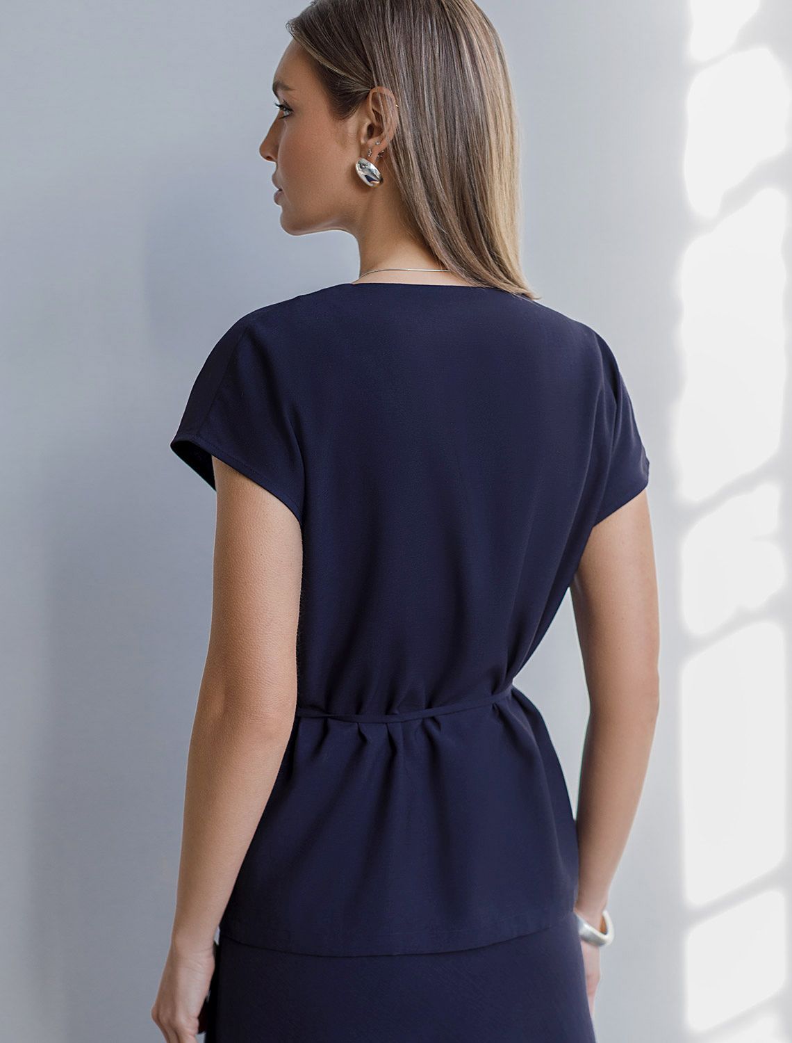 Жилет на запАх с поясом из плотного лиоцелла D27.004 темно-синий
