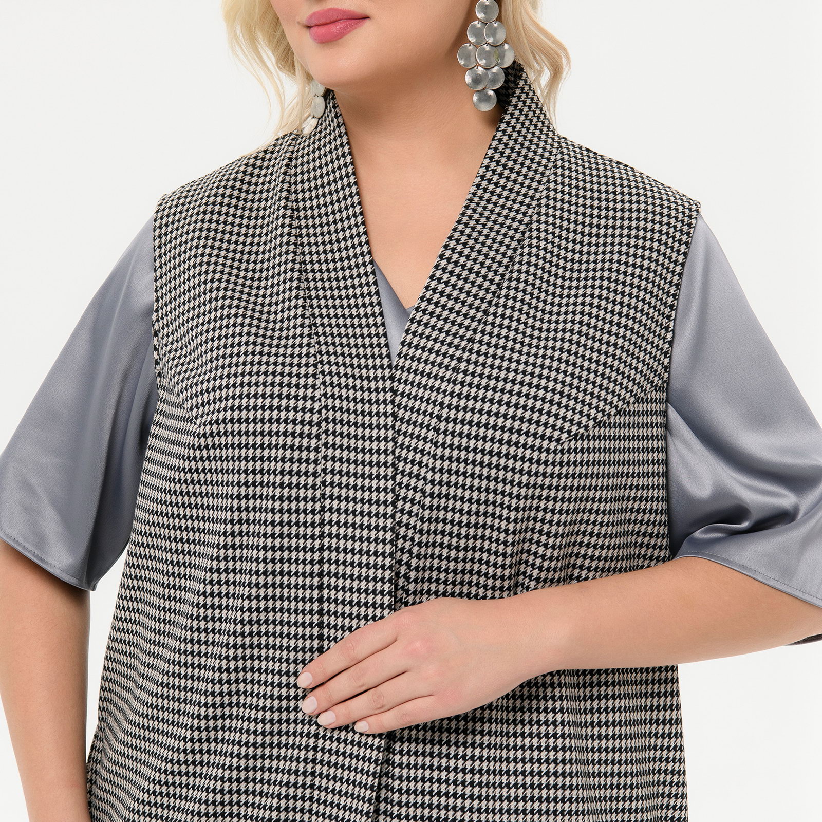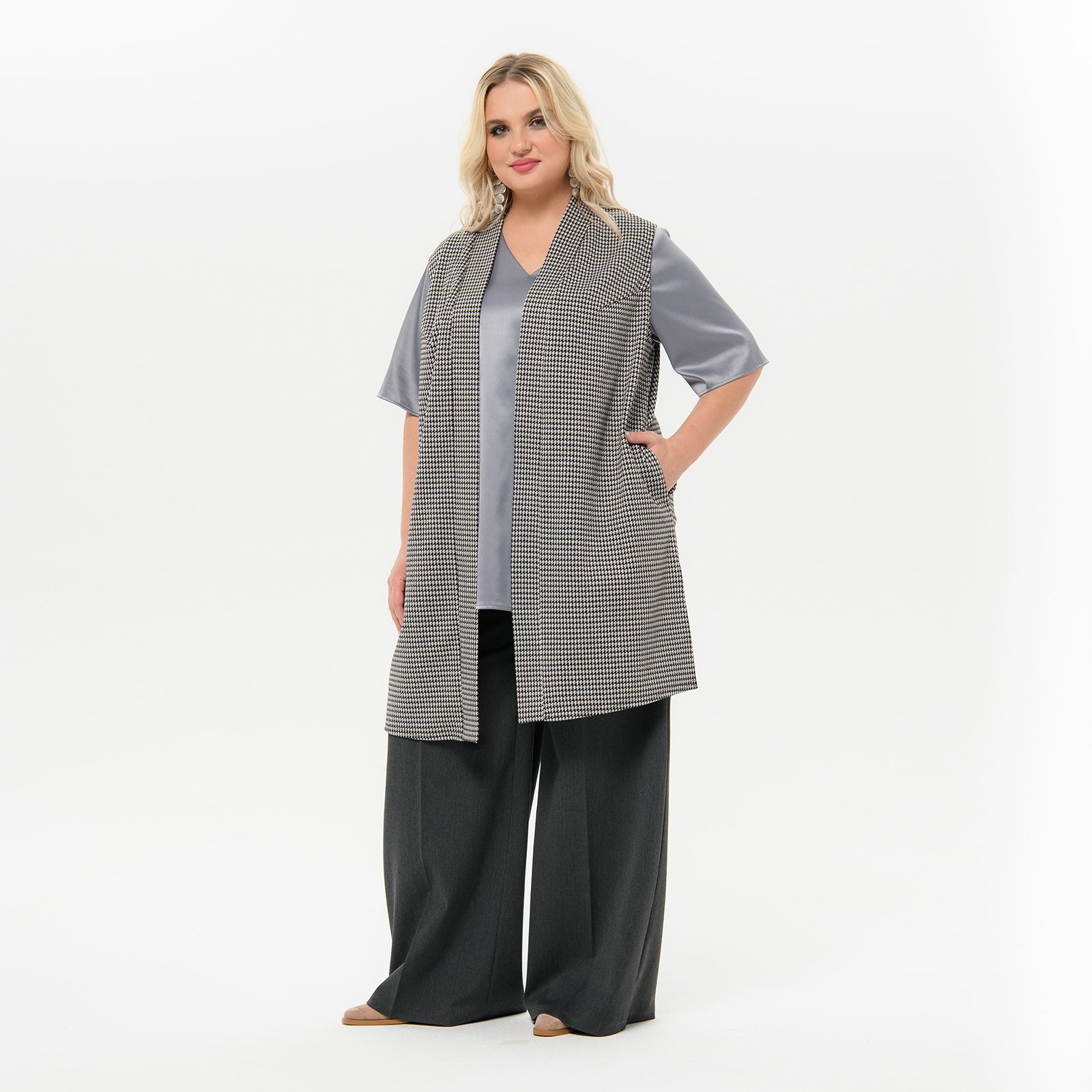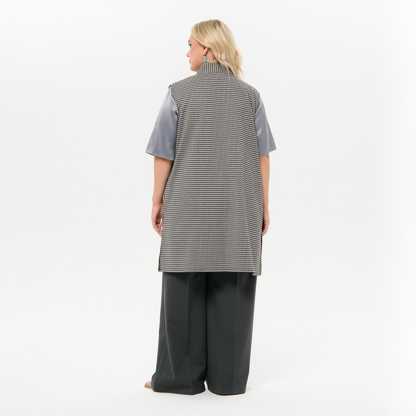Удлиненный, стильный  жилет из плотного трикотажного джерси в клетку.  В боковых швах карманы и разрезы.