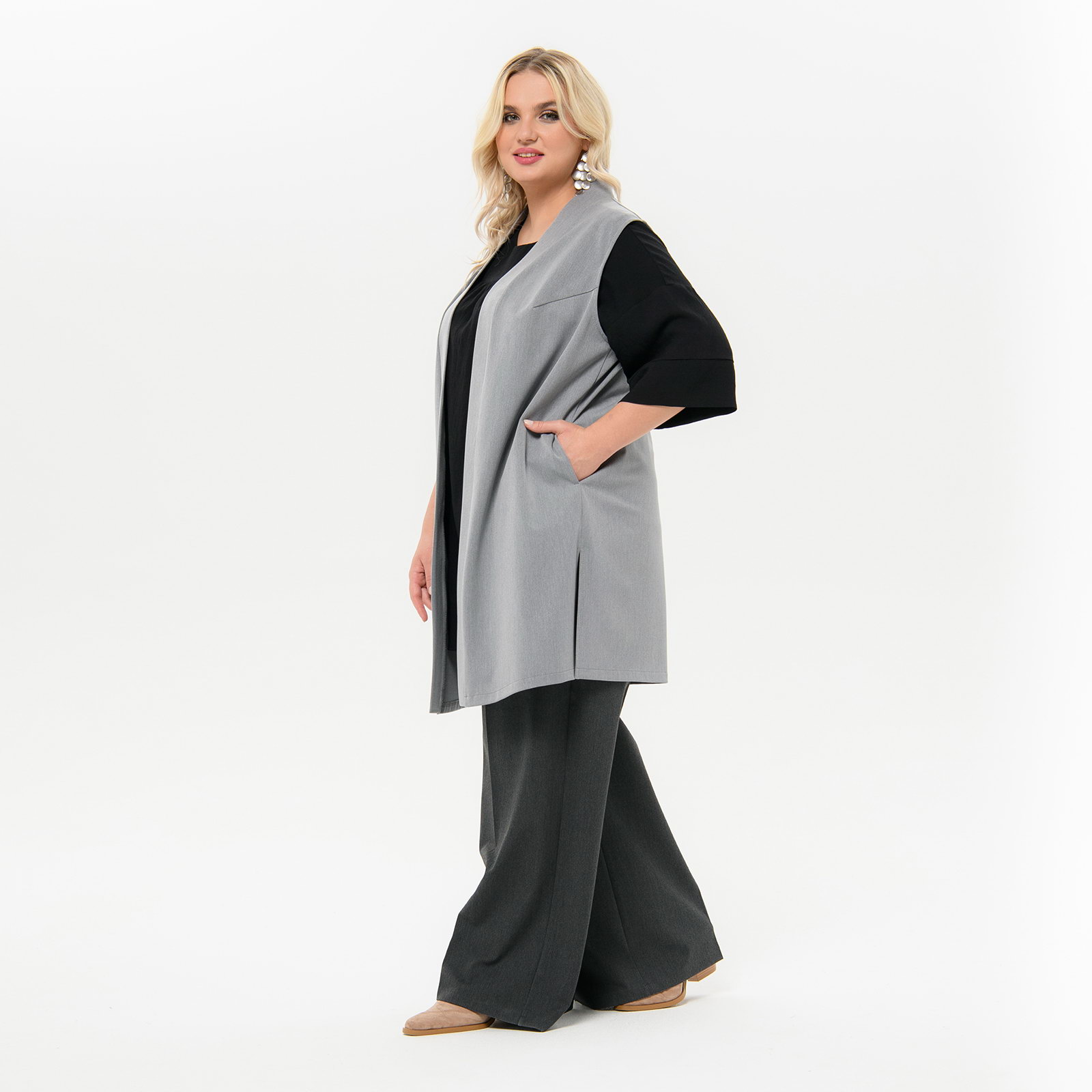 Жилет удлиненный из костюмной ткани с эластаном, цвет "платиново-серый"