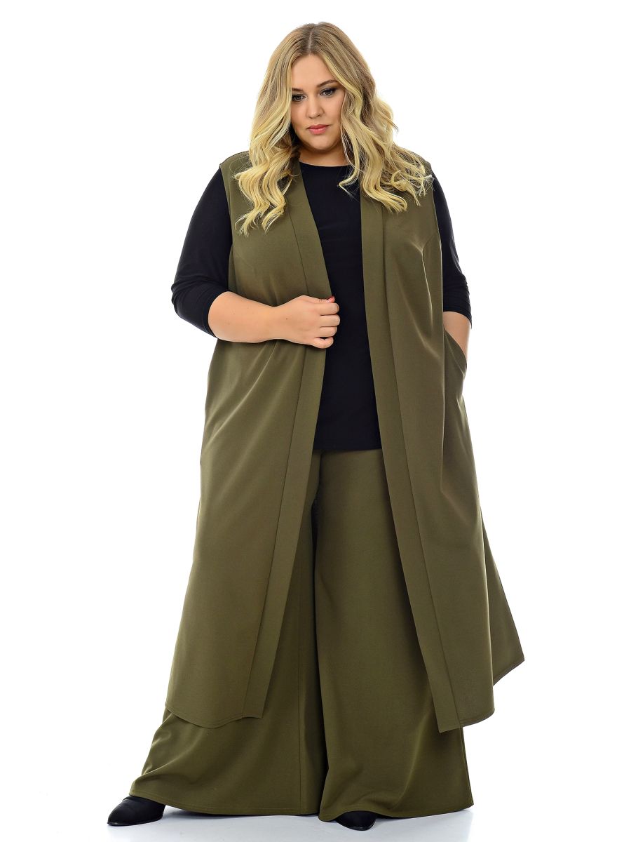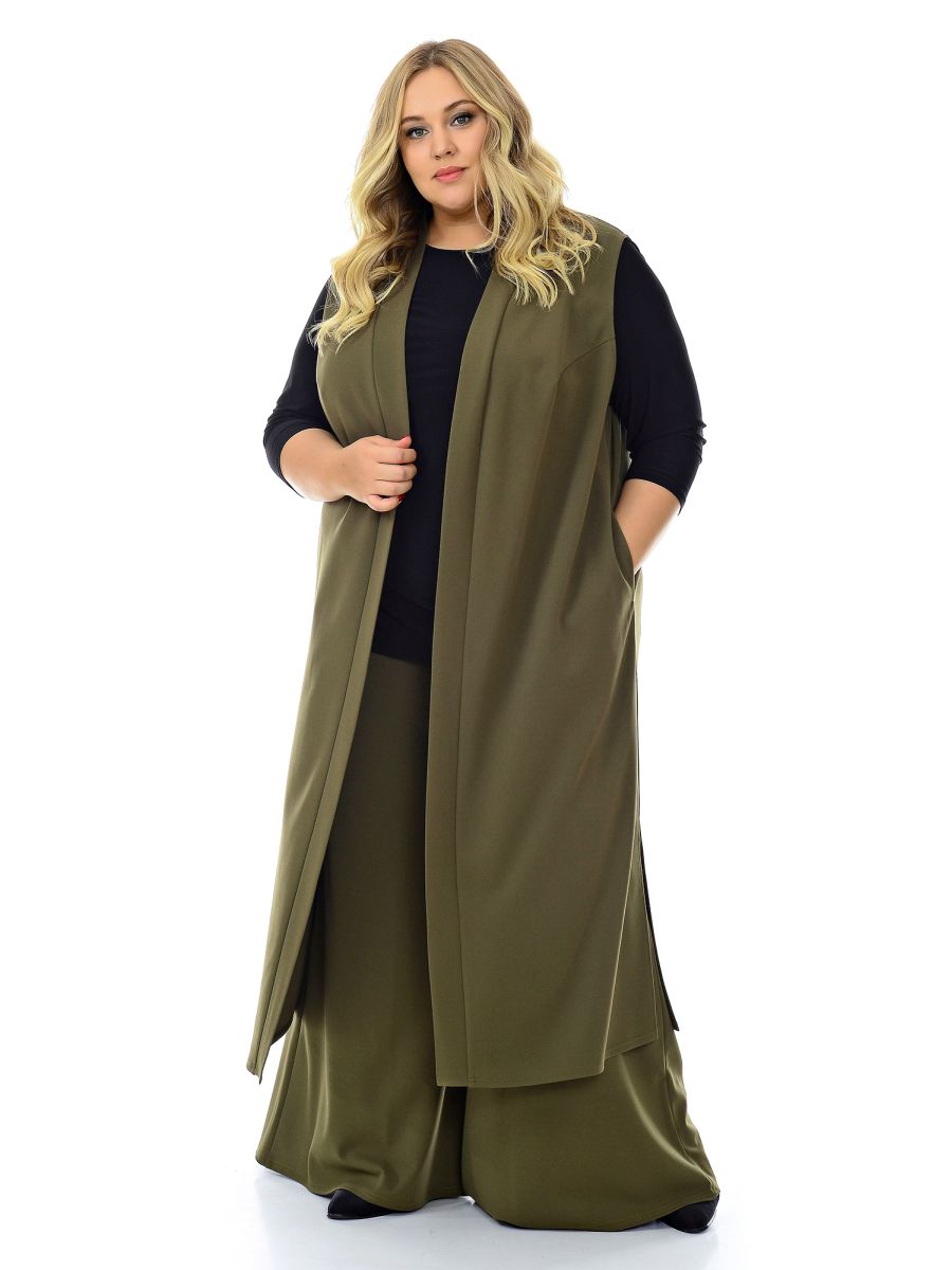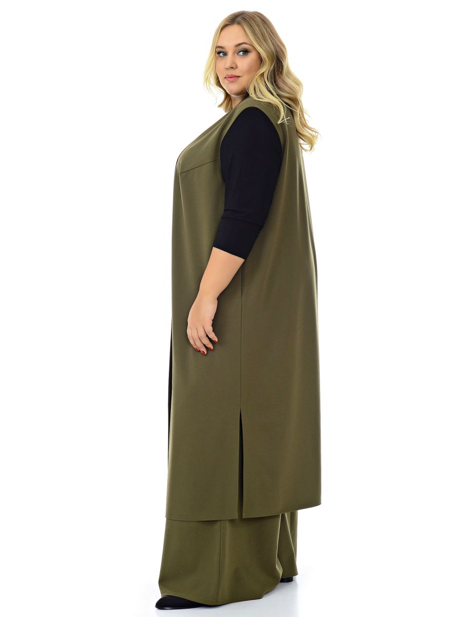 Жилет удлиненный из крепа с эластаном, хаки