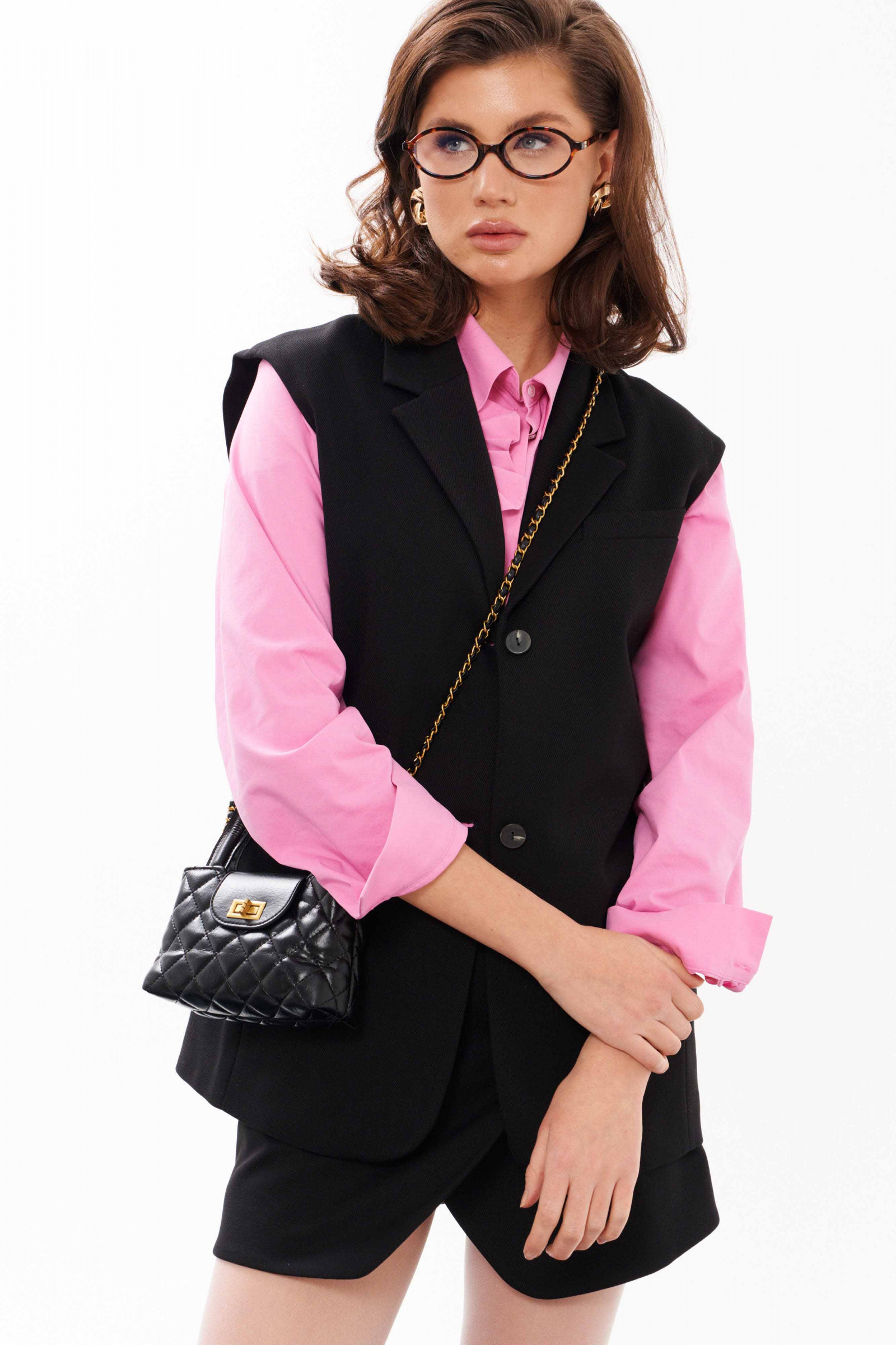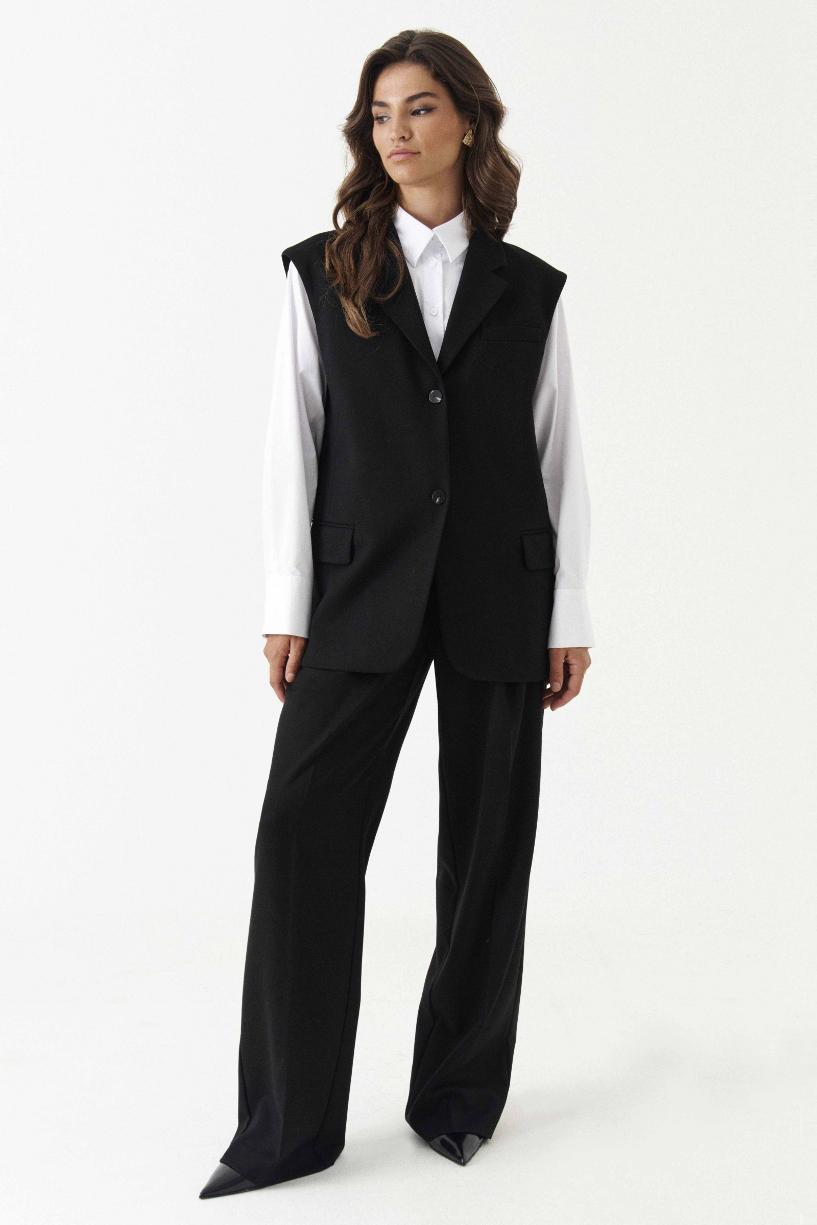 Жилет женский из смесовой ткани для повседневной носки на подкладке. Жилет полуприлегающего силуэта. Жилет с центральной бортовой застежкой на две обметанные петли и две пуговицы. Перед имеет два рельефа, идущих от проймы до низа изделия, а также на переде располагается нагрудный карман с листочкой и карман с клапаном и двумя обтачками. Спинка со средним швом и с двумя рельефами, идущими от проймы до линии низа изделия со шлицей в среднем шве спинки. Горловина обработана пиджачным воротником. Этот изумительный жилет станет вашим спасением для разного рода прогулок и мероприятий. Вы всегда будете в центре внимания.