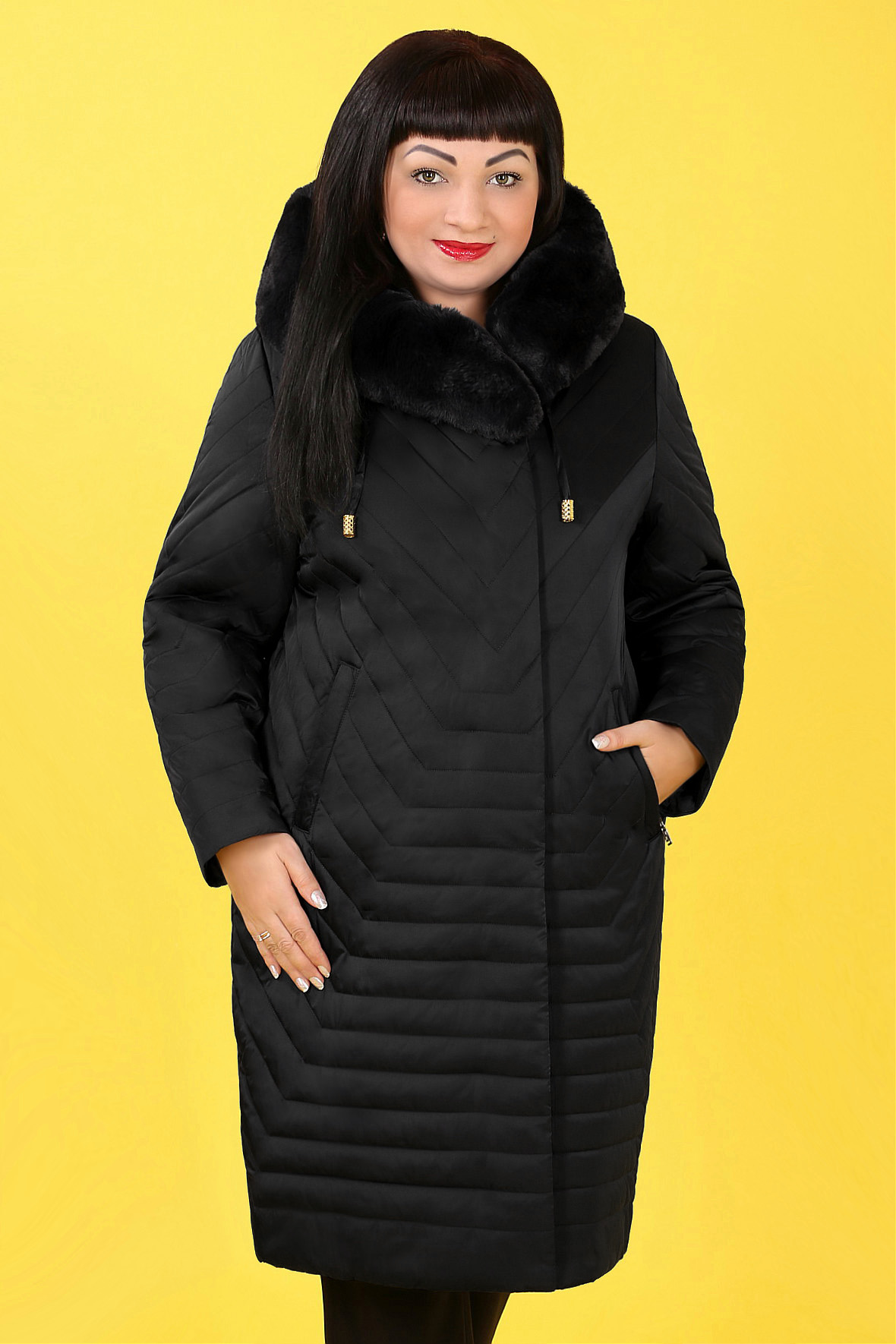 0У53 1913.С3 Пальто зимнее с капюшоном+ меховая отделка