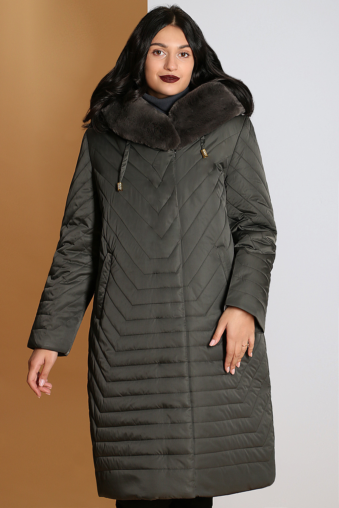 0У53 1913.С4 Пальто зимнее с капюшоном+ меховая отделка