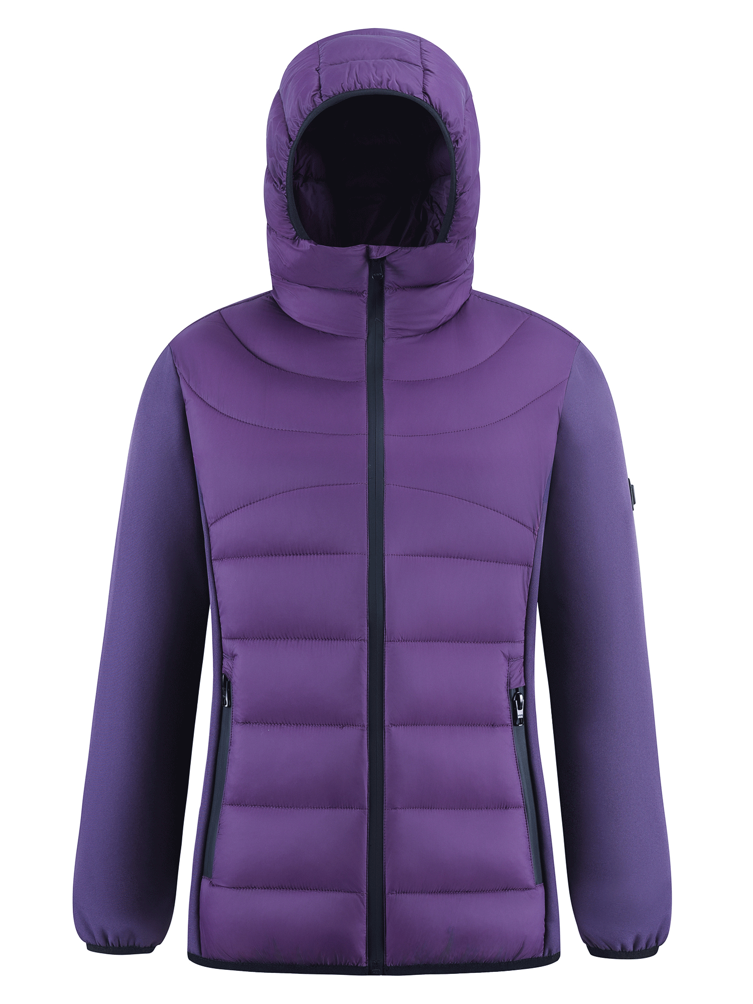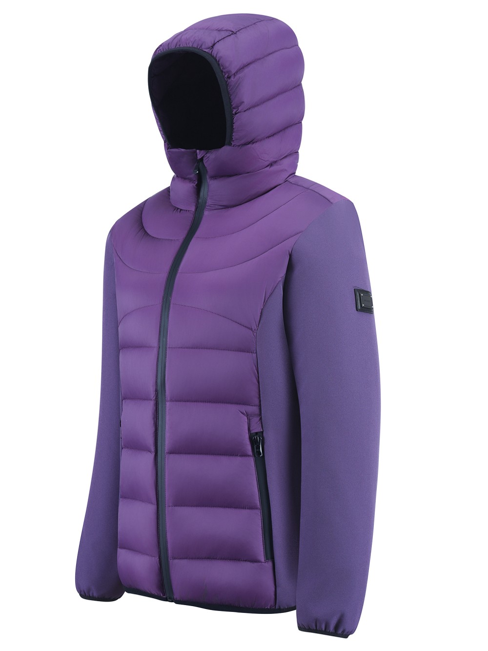 Куртка женская гибридная стёганая с капюшоном с графеновой подкладкой фиолетового цвета 9630_1F