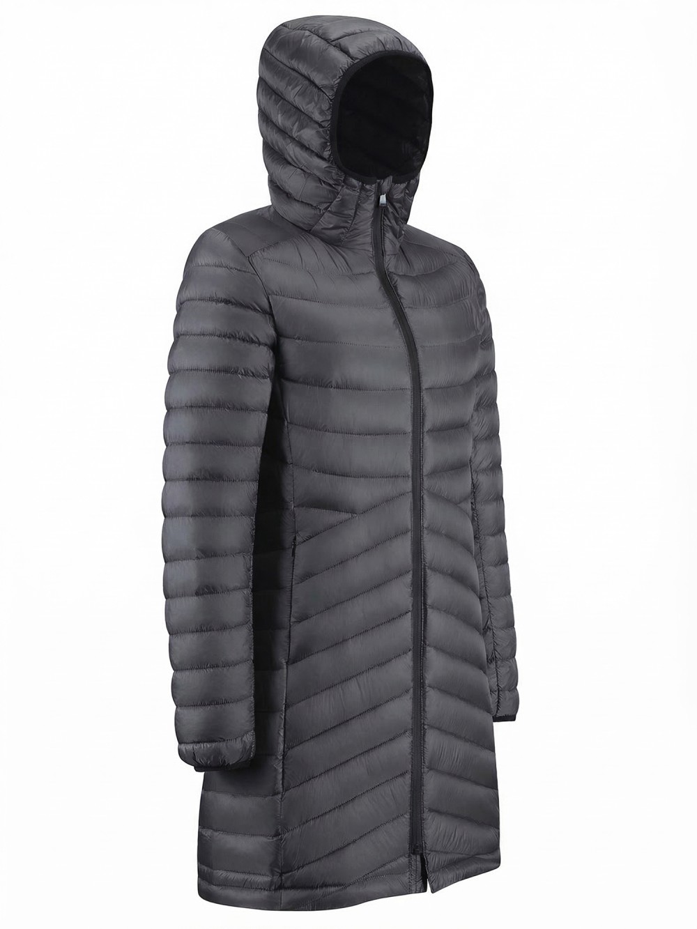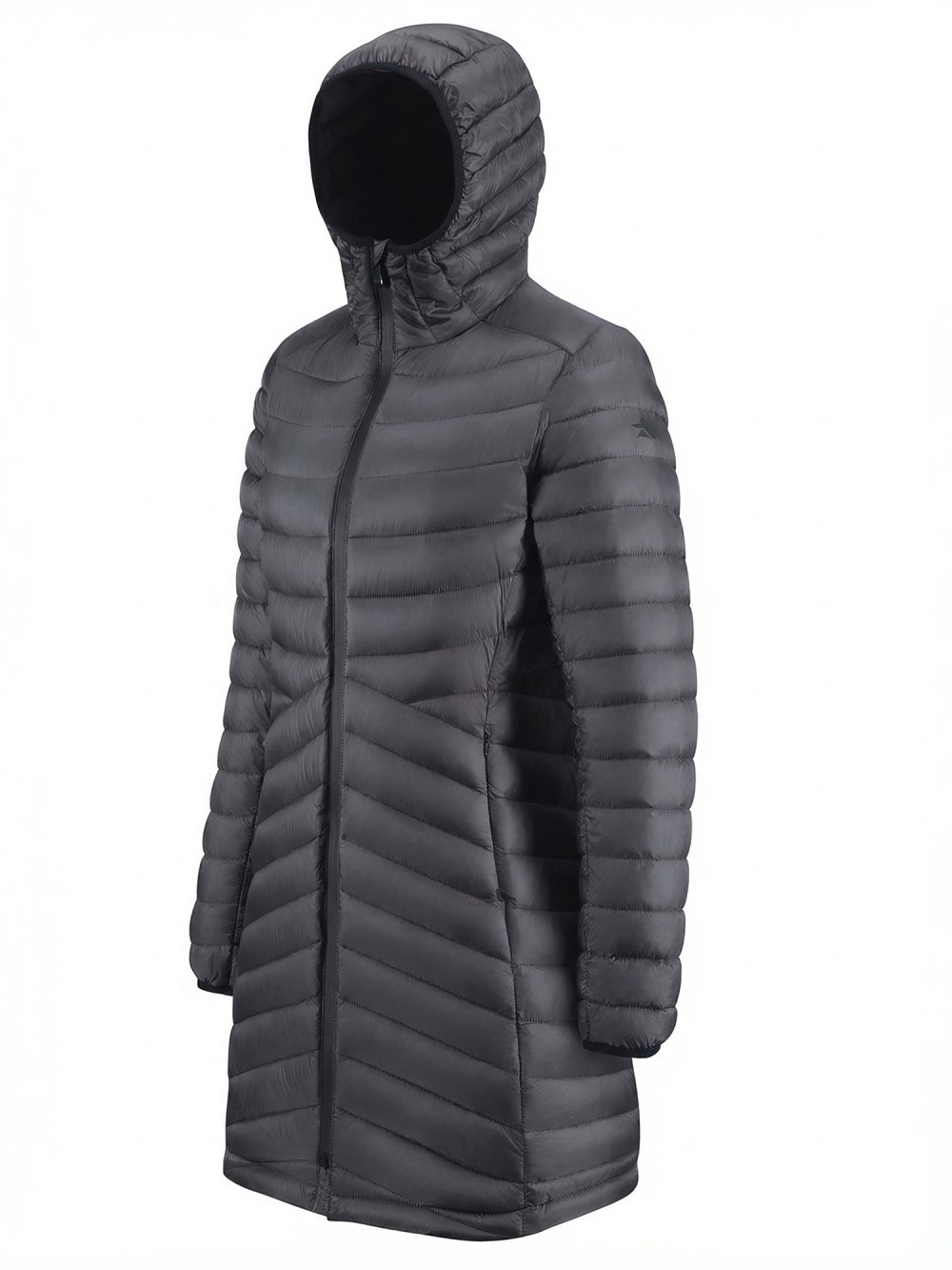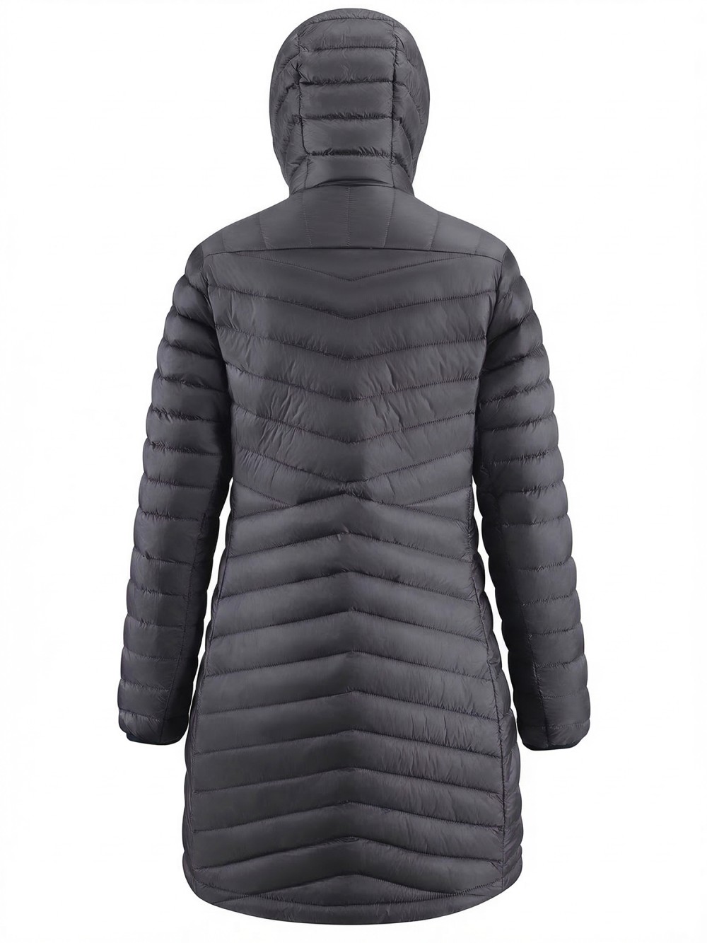 Удлинённый силуэт делает модель ещё более практичной — он защищает от ветра и создаёт ощущение дополнительного уюта. Капюшон помогает сохранить тепло и защищает от непогоды, делая куртку удобной для ежедневной носки.