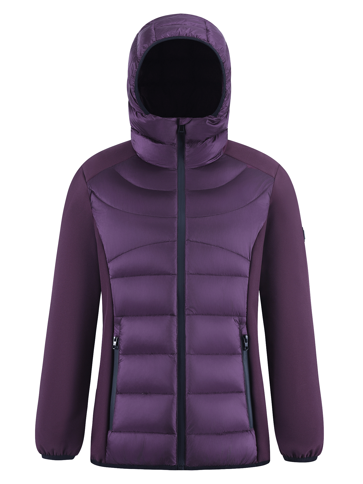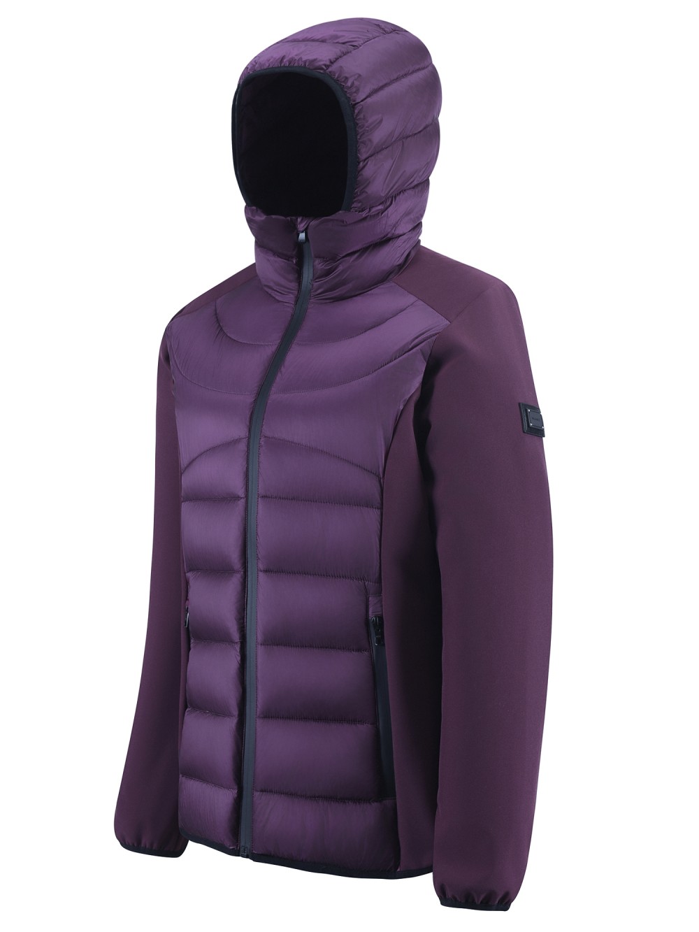 Куртка женская гибридная стёганая с капюшоном с графеновой подкладкой темно-фиолетового цвета 9626_1TF