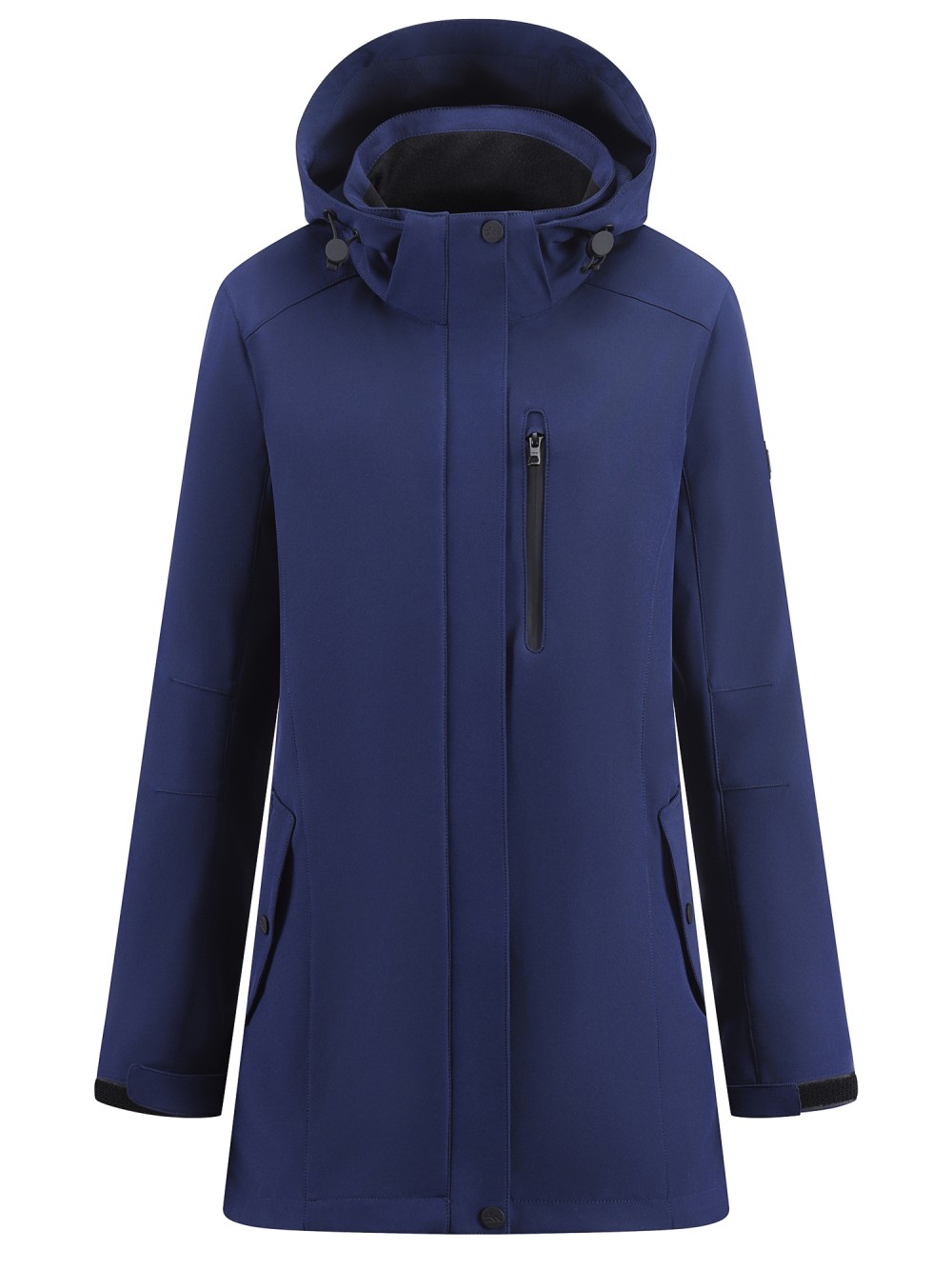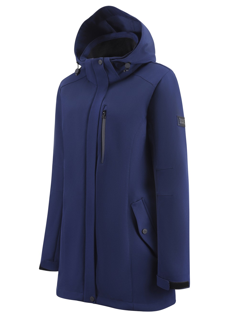 Парка женская софтшелл виндстоппер удлинённая с капюшоном темно-синего цвета 9618_1TS