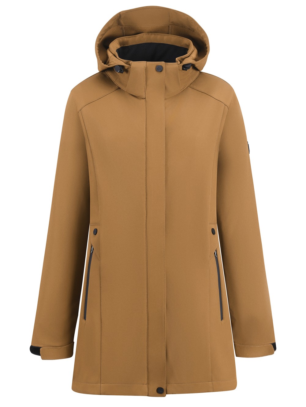 Парка женская софтшелл виндстоппер удлинённая с капюшоном горчичного цвета 9614_1G