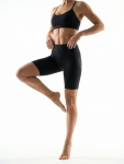 Легинсы легко комбинируются с укороченными топами, кардиганами, жакетами и обувью на каблуке или на плоском ходу. Универсальный черный цвет делает модель базой для повседневных и более собранных образов.