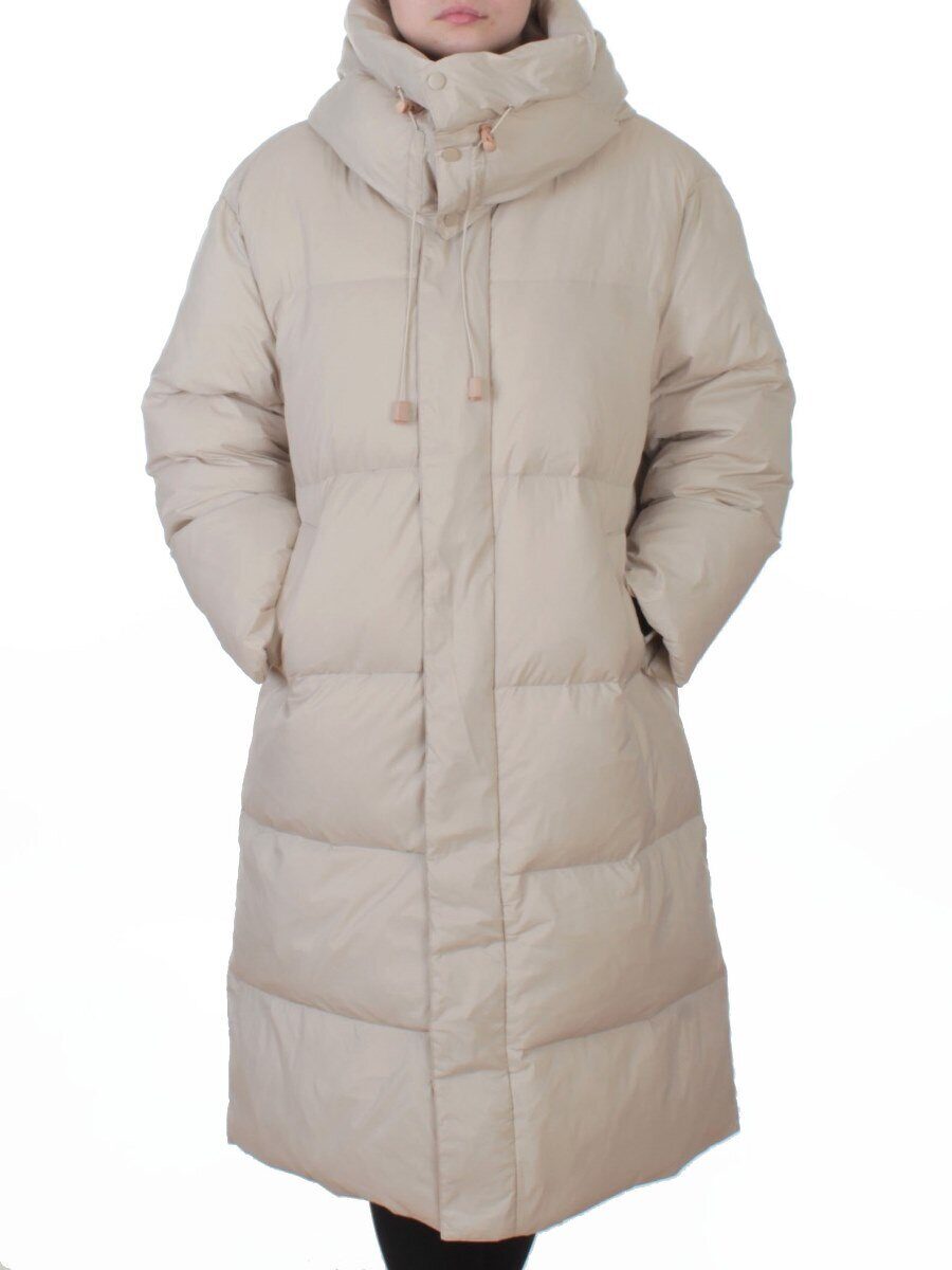3063 BEIGE Пальто пуховое женское оверсайз (утиный пух)