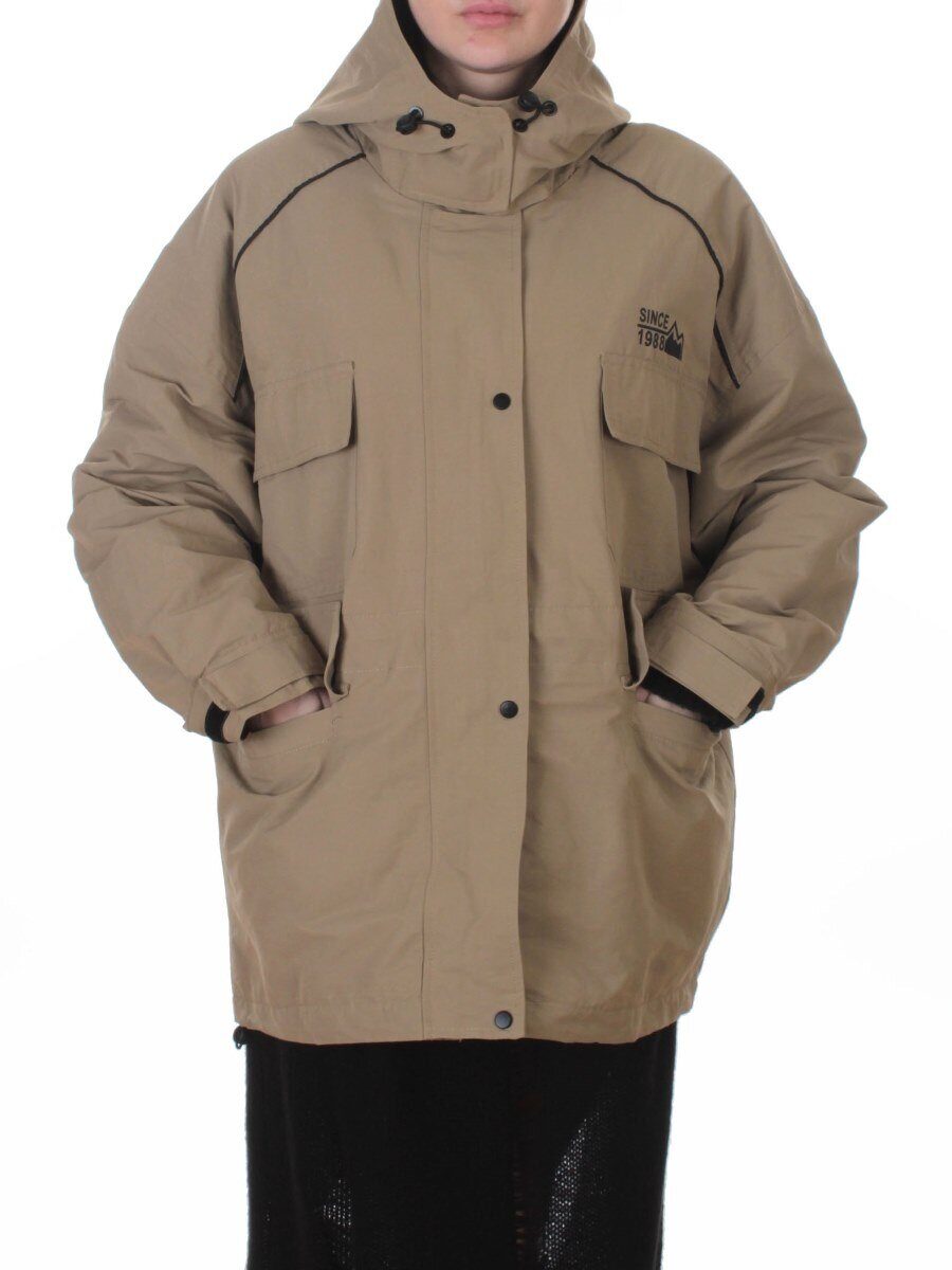 3092 BEIGE/GREEN Куртка демисезонная женская (100 гр. холлофайбер)
