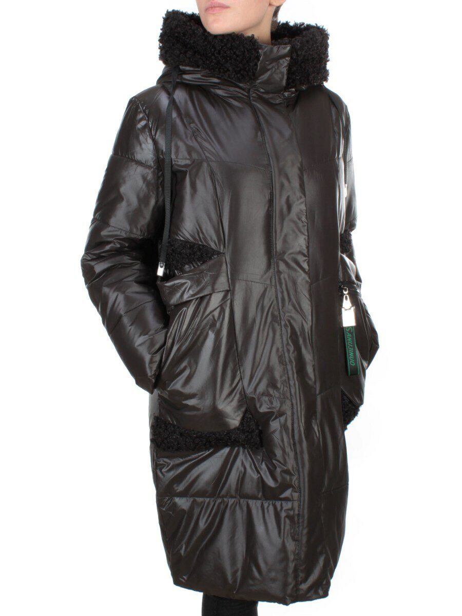 21-985 BLACK Пальто зимнее женское AIKESDFRS (200 гр. холлофайбера)