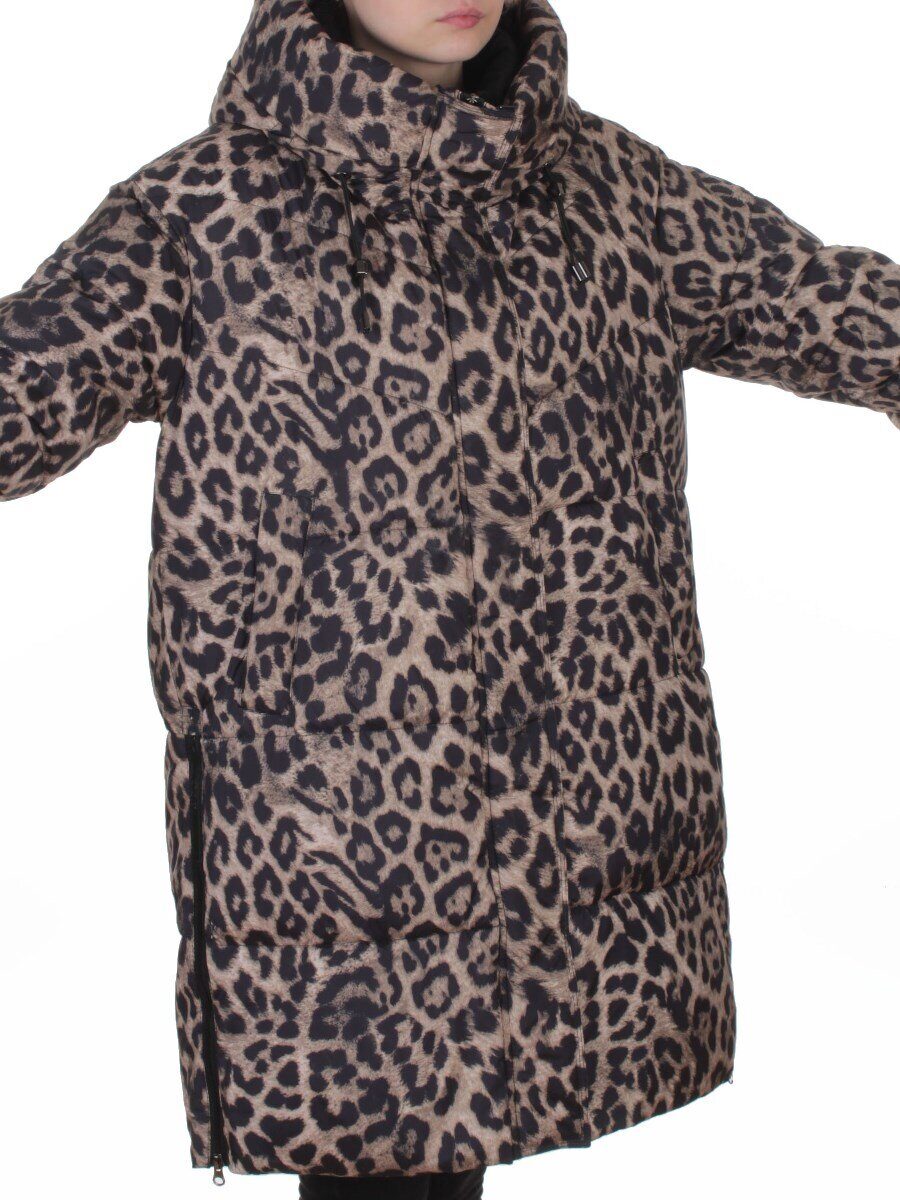8892 BROWN/LEOPARD Куртка зимняя женская оверсайз с вшитой жилеткой (200 гр. холлофайбер)