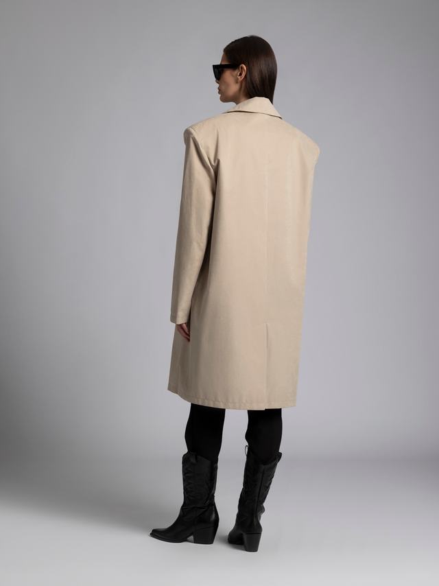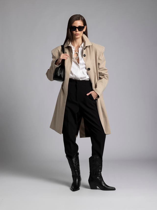 Эффектный плащ, который вдохновлен трендом на широкие плечи.