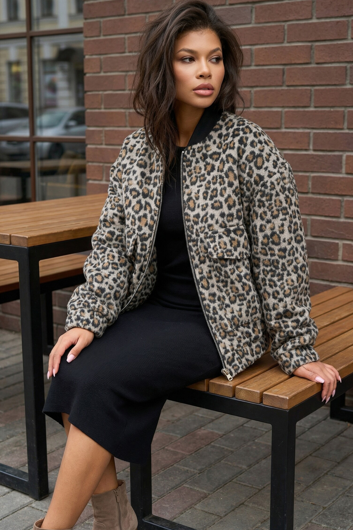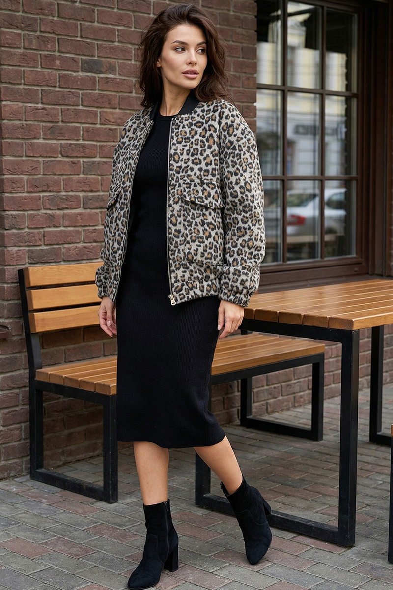 ст. цена6290руб.! Бомбер леопардовый из пальтовой ткани с шерстью на утепленной подкладке