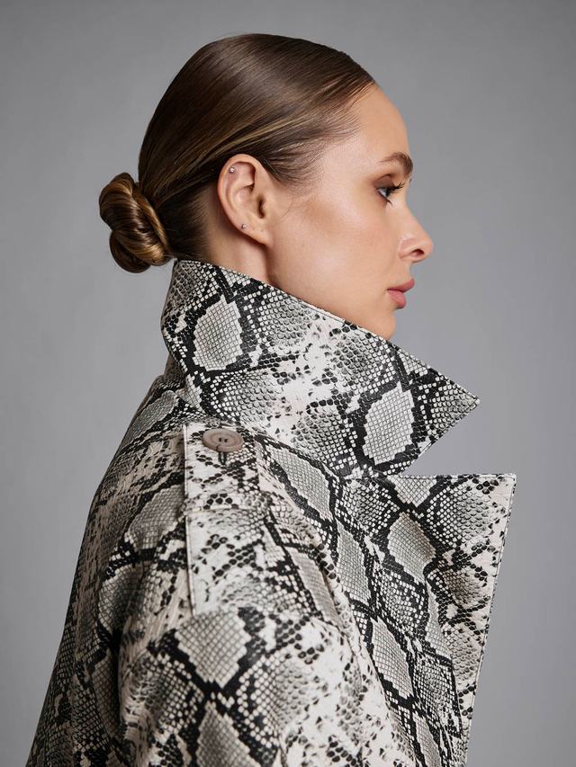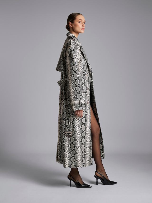 Дерзкий плащ из экокожи, в котором все будут смотреть вам вслед. Змеиный принт — тренд среди знаменитостей, которые следят за модой.
