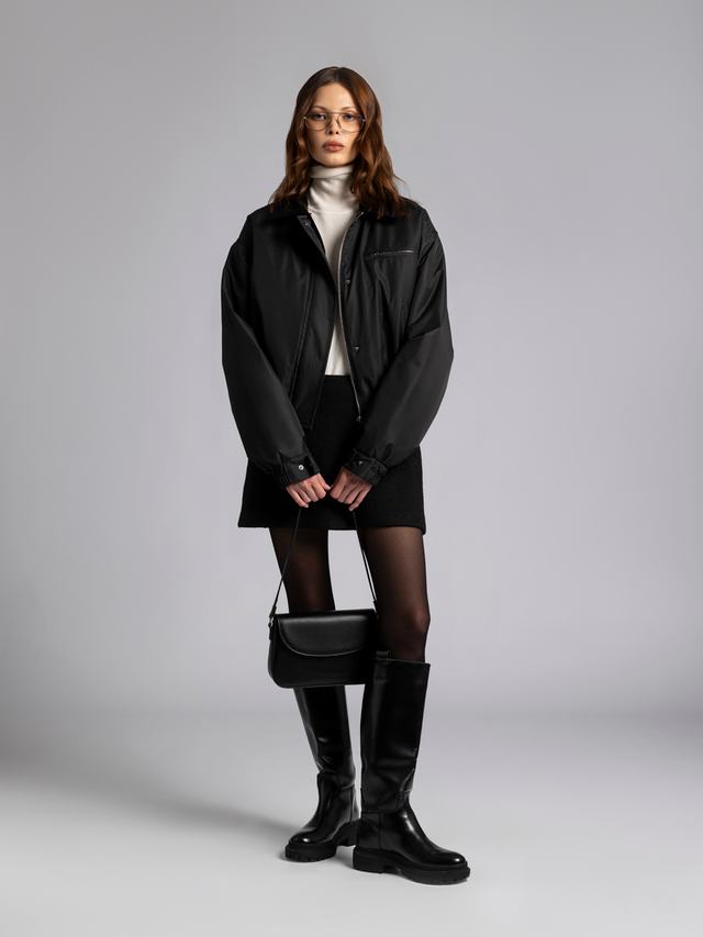 Бомбер «URBAN» вдохновлен городом и офисными буднями, которые мы захотели разнообразить. Неклассическая и элегантная модель — вельветовый воротник, длина 55 см и регулирующиеся манжеты.