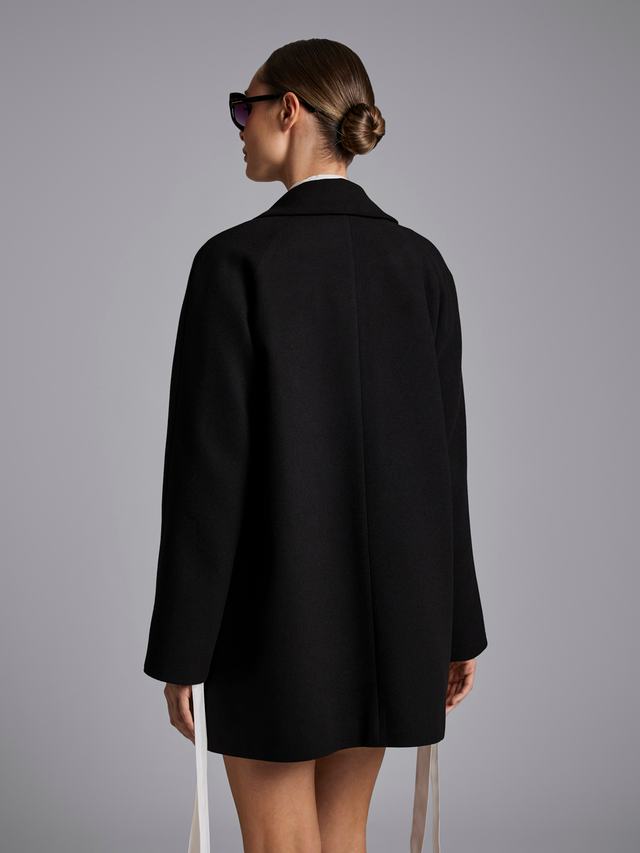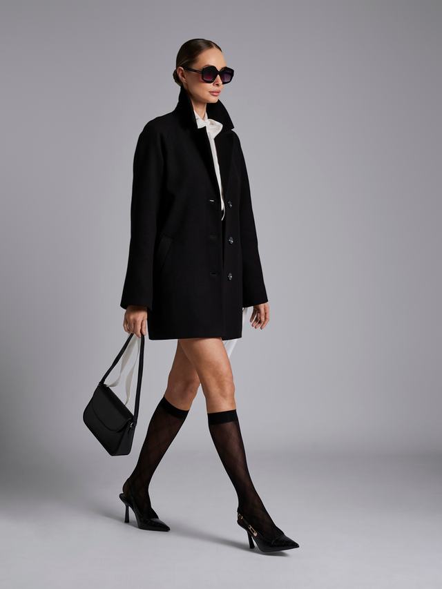 Изделие сочетает в себе крой классического пальто и трендовую короткую длину. Длина в 80 см выдерживает идеальный баланс между комфортом движения и элегантностью.