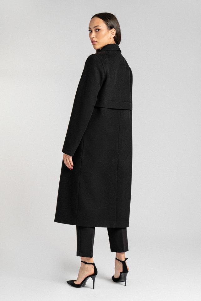 Двубортное пальто длиной 110 см никогда не выйдет из моды и последует за вами на свидание, бизнес-встречу и выставку.