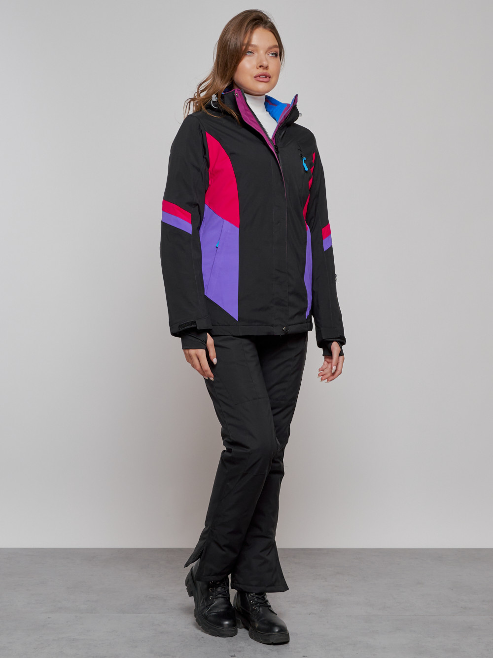 Горнолыжная куртка женская зимняя черного цвета 2201-1Ch
