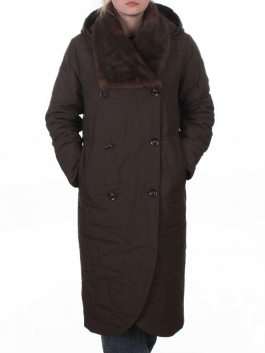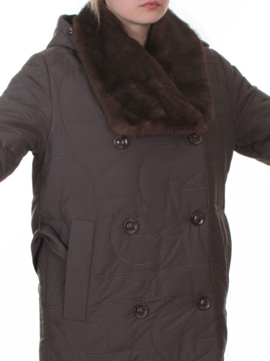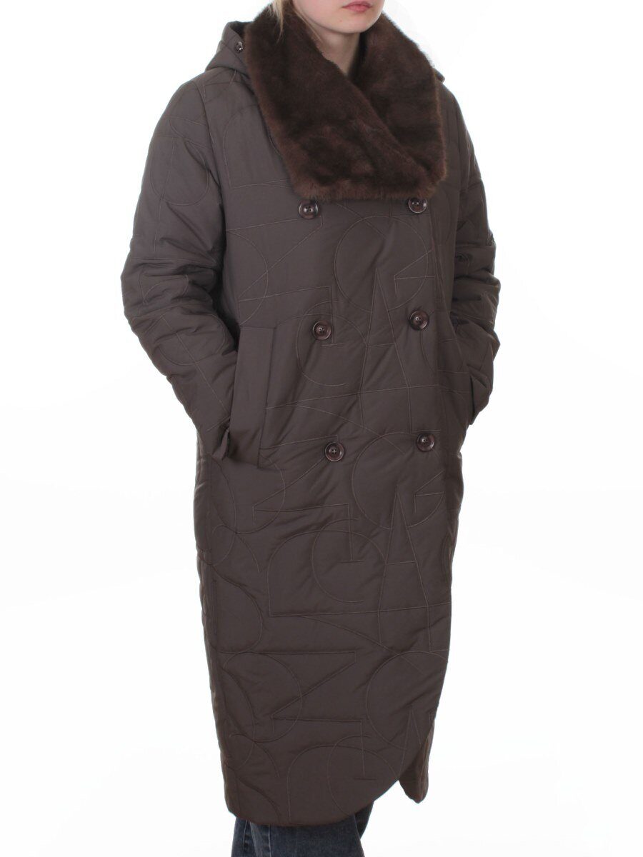 A617 GRAY/BROWN Пальто зимнее женское (верблюжья шерсть, 120 гр. холлофайбер)