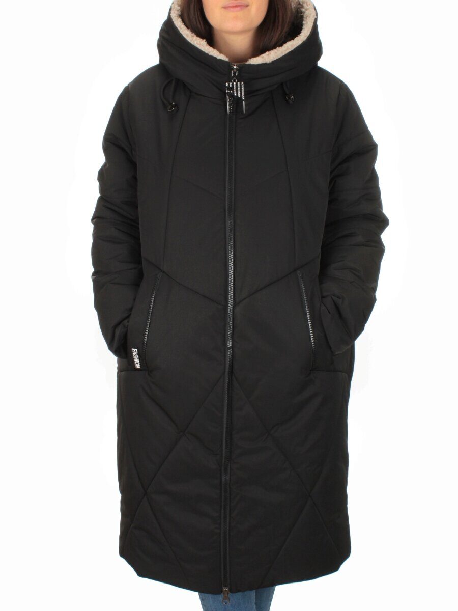 M-9086 BLACK Пальто зимнее женское CORUSKY (верблюжья шерсть)