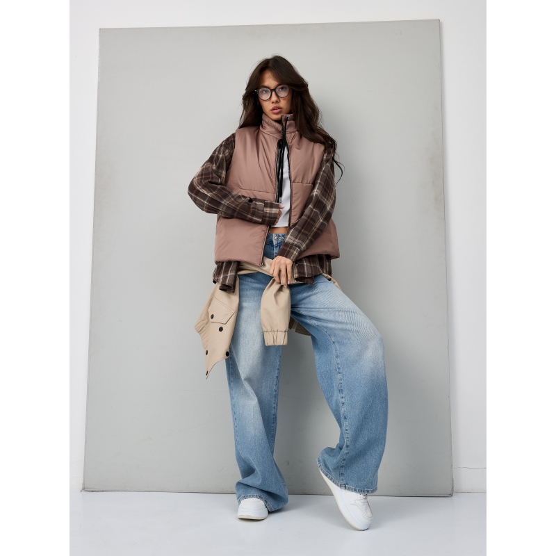 Утепленный женский жилет с воротником-стойкой арт.GG-K кофе