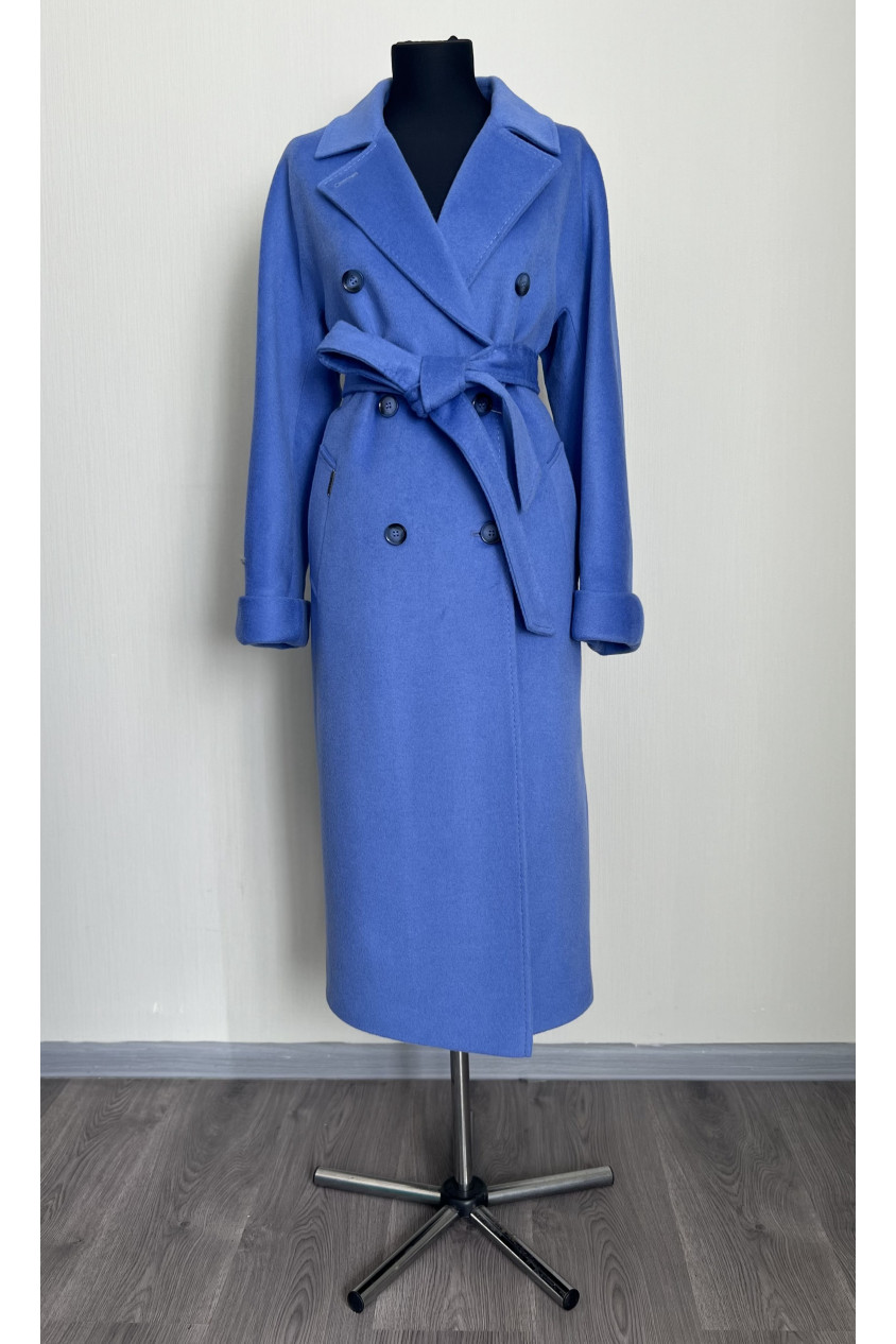Пальто прямого кроя, двубортное с покатым рукавом. Дополнено поясом из основного материала, фиксируется на пуговицы.